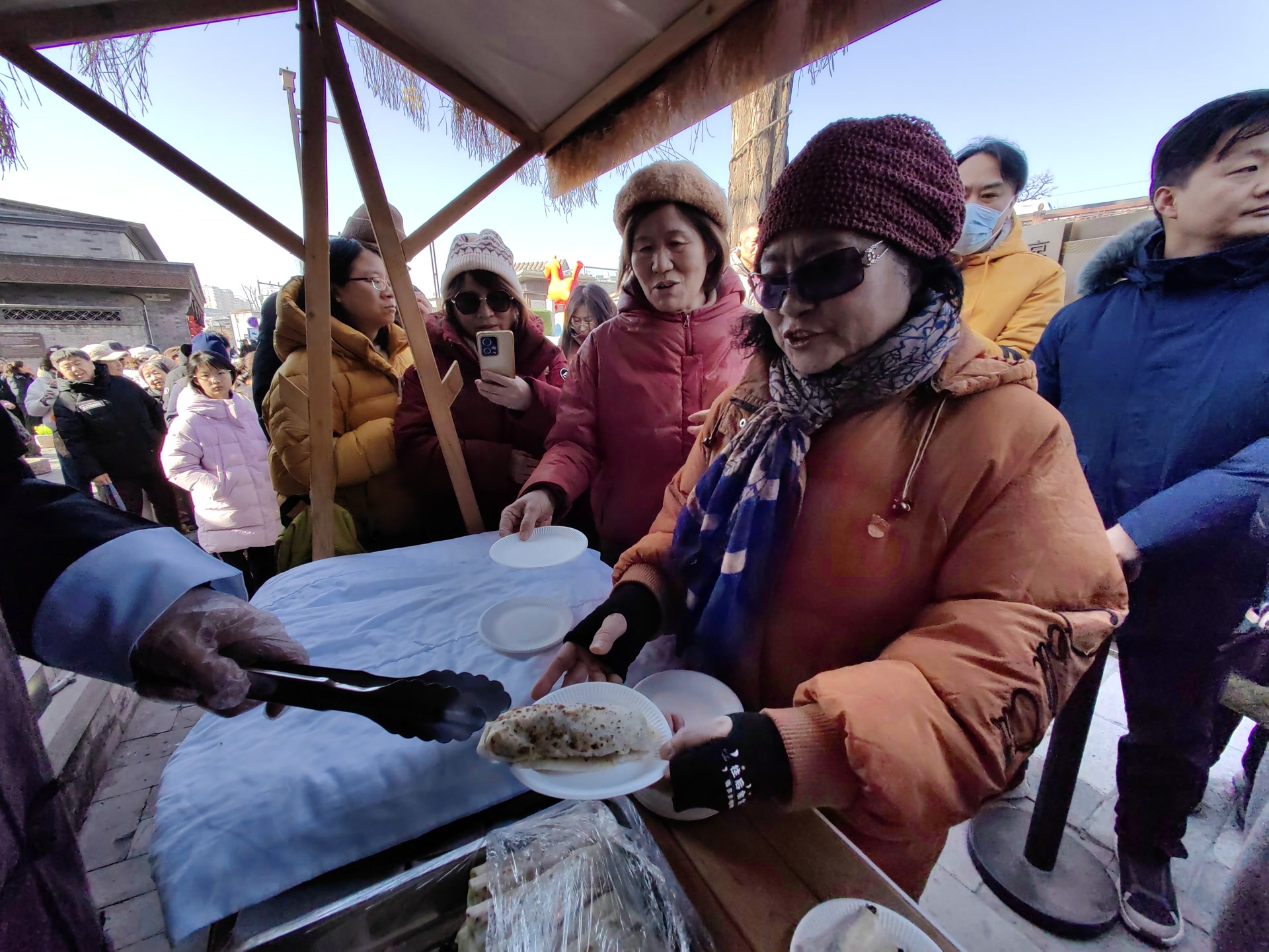 活动还设置互动体验与年货售卖环节:邀请观众品尝春饼,以“咬春”习俗传递迎春纳福之意;年货售卖区琳琅满目,特色好物兼具传统韵味与地方特色,为街区增添浓厚烟火气。
