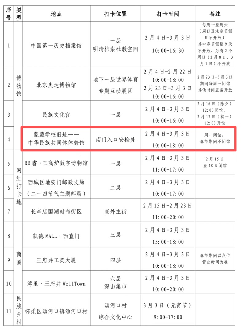 ✅ 打卡攻略速码:往蒙藏学校旧址南门入口安检处,对照H5打卡地图,加盖智能印章,即可完成打卡,操作简单又有仪式感,随手就能解锁新春限定纪念!
