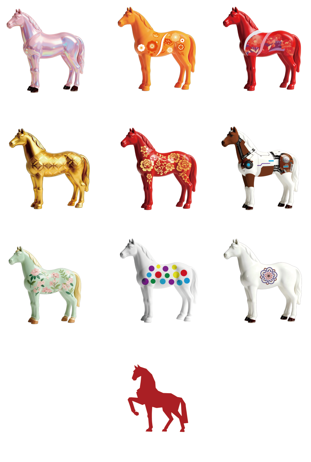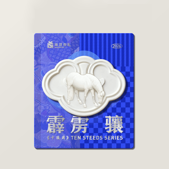 该系列创意灵感源自清代宫廷画师郎世宁的传世名作《十骏图》。这幅融合中西绘画技法的经典作品,细致描摹了“狮子玉”“万吉骦”等十匹皇家名驹的飒爽英姿。“海淀有礼”的设计师团队深入研读画作细节,将名驹的神韵风骨凝练为掌心大小的艺术盲盒,既保留了郎世宁作品中西合璧的艺术精髓,又赋予其“马到成功”的新春美好寓意。