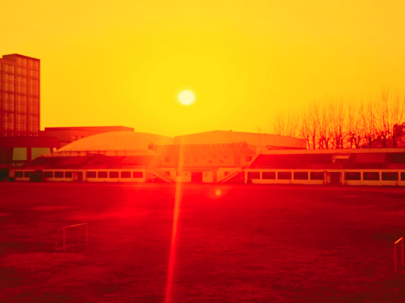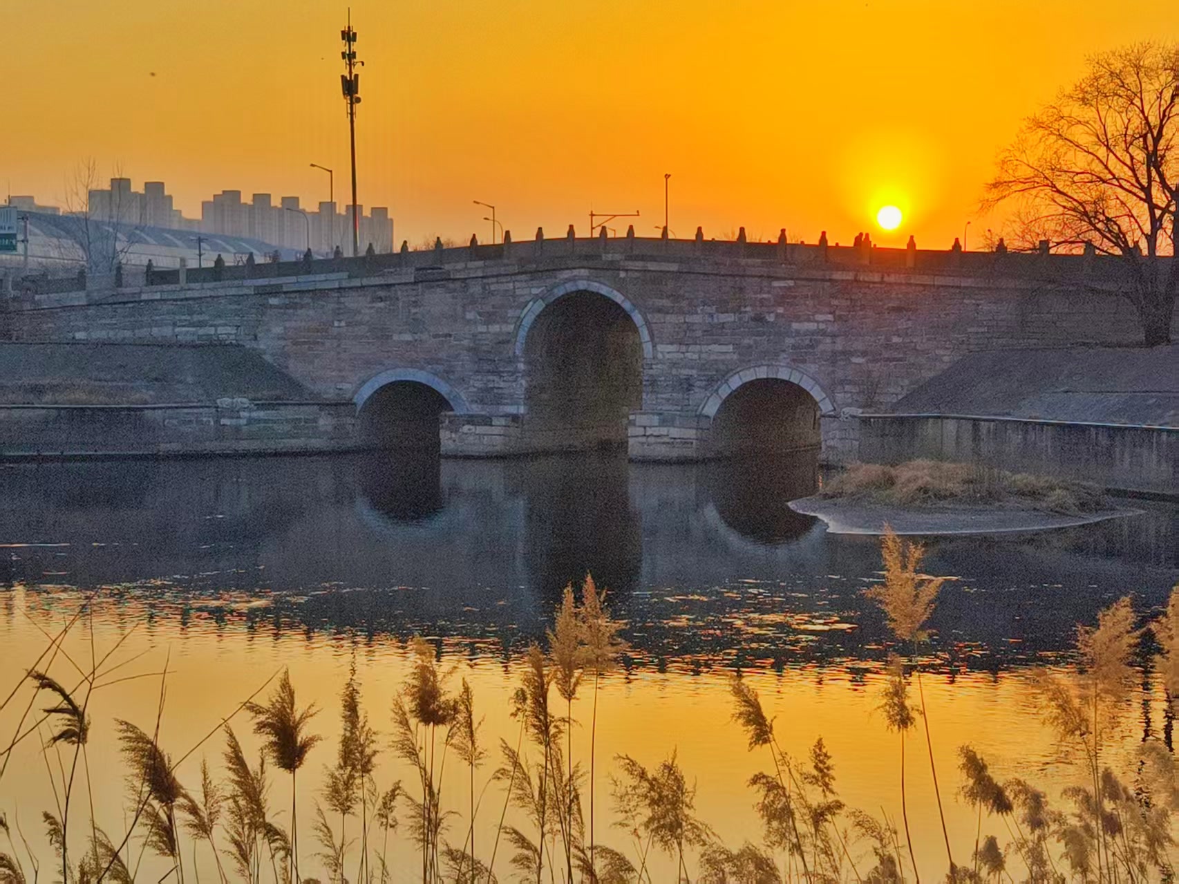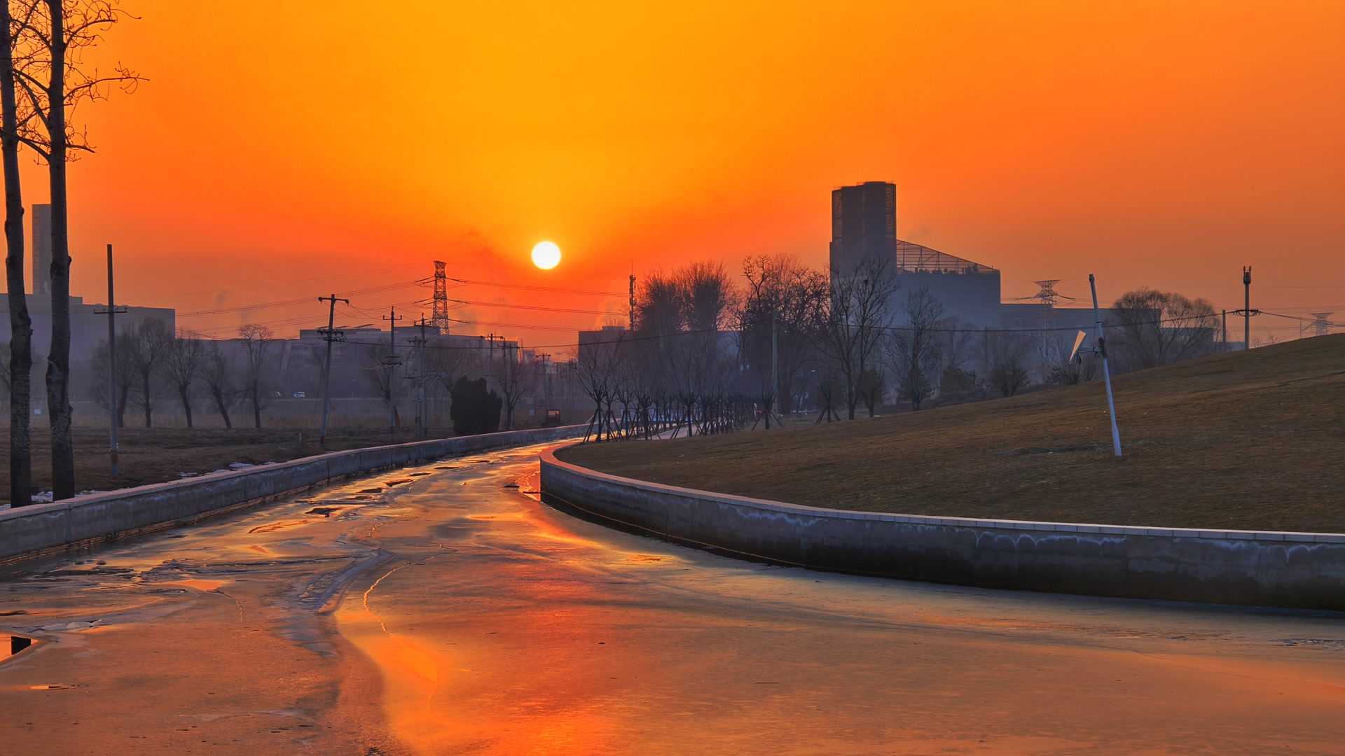 2月4日,北京,傍晚时分,那轮火红的大太阳似巨盘,缓缓下沉,将天际染得如梦似幻。