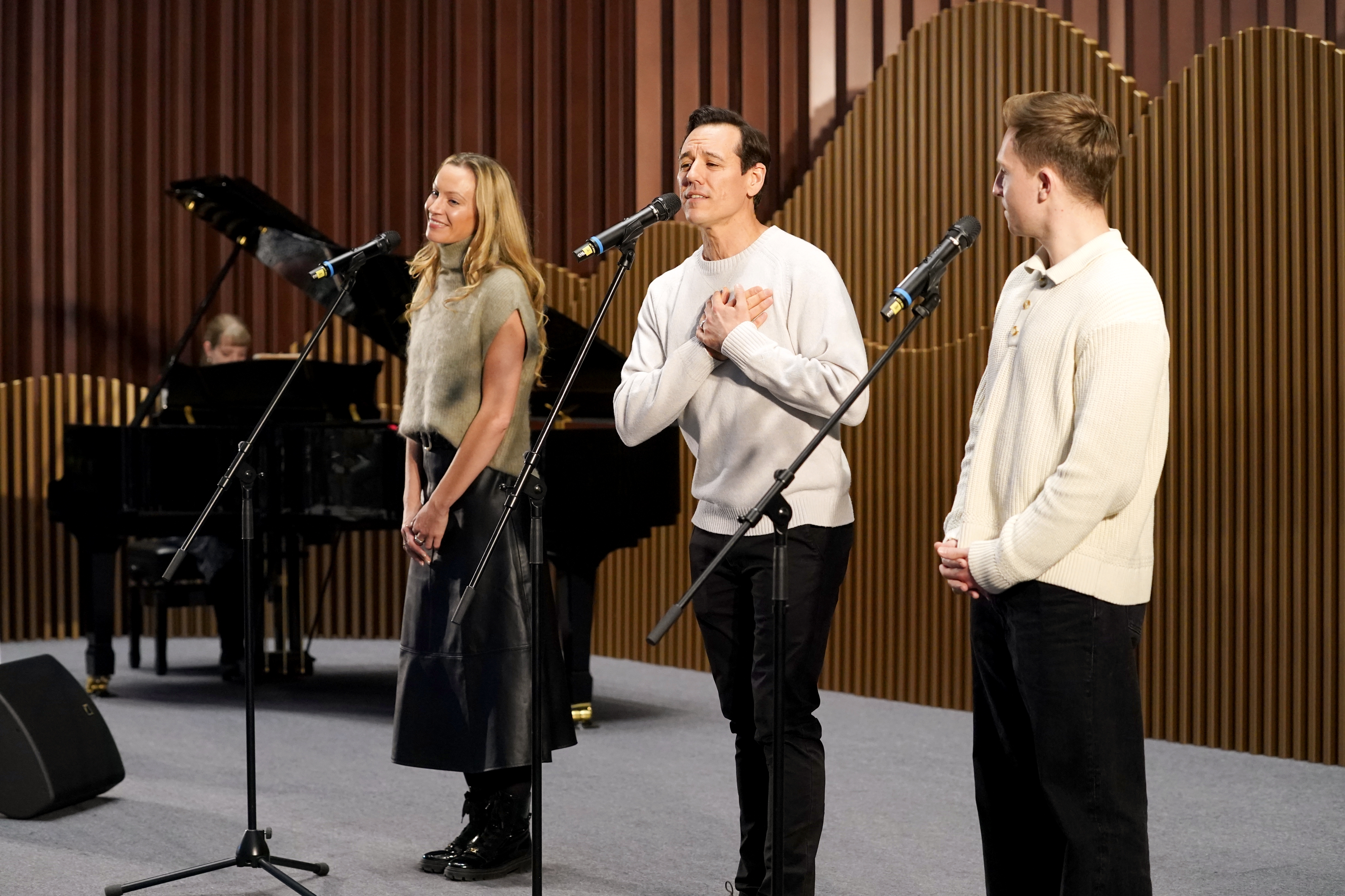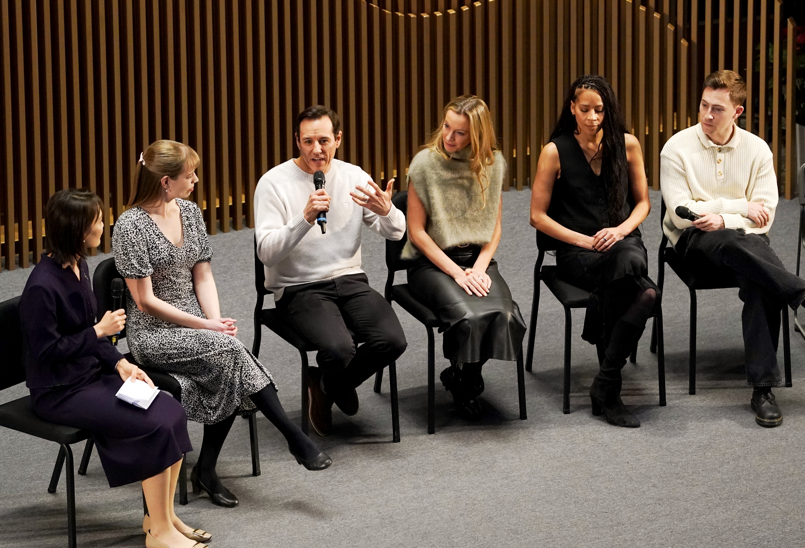 《Good Morning》轻快喜悦,《Singin’In the Rain》浪漫肆意,午后的北京艺术中心,两首旋律接连唱响,既带着经典电影的怀旧温度,也唤醒了一段舞台记忆:去年,伦敦西区原版音乐剧《雨中曲》在北京艺术中心上演,掀起辐射全城甚至全国的现象级观演热潮。2月5日至14日,《雨中曲》重回北京艺术中心演出12场,2月4日,剧组提前与观众见面,分享创作心得。