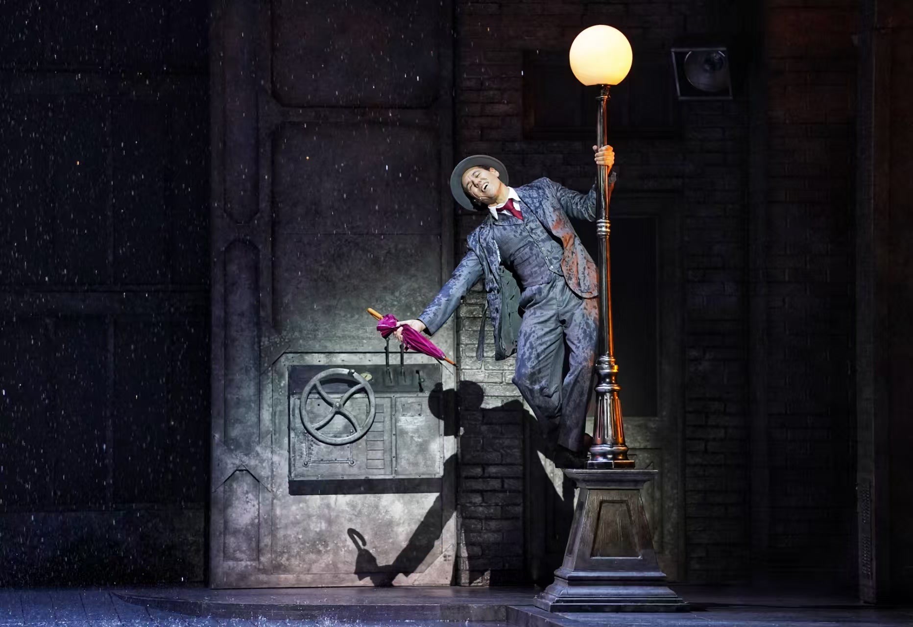 伦敦西区音乐剧《雨中曲》自2012年世界首演以来,一直都被观众票选为最受欢迎的电影音乐剧,它还原了同名电影中的经典唱段,同时保留标志性的霓虹灯、绚丽的色彩、复古的服饰等视觉符号,融合现代化的灯光机械,打造了相当震撼的舞台场面,比如,在表现下雨场景时,6吨恒温真雨从半空中倾洒而下,随演员载歌载舞时溅起晶莹水花,呈现效果逼真而惊艳。