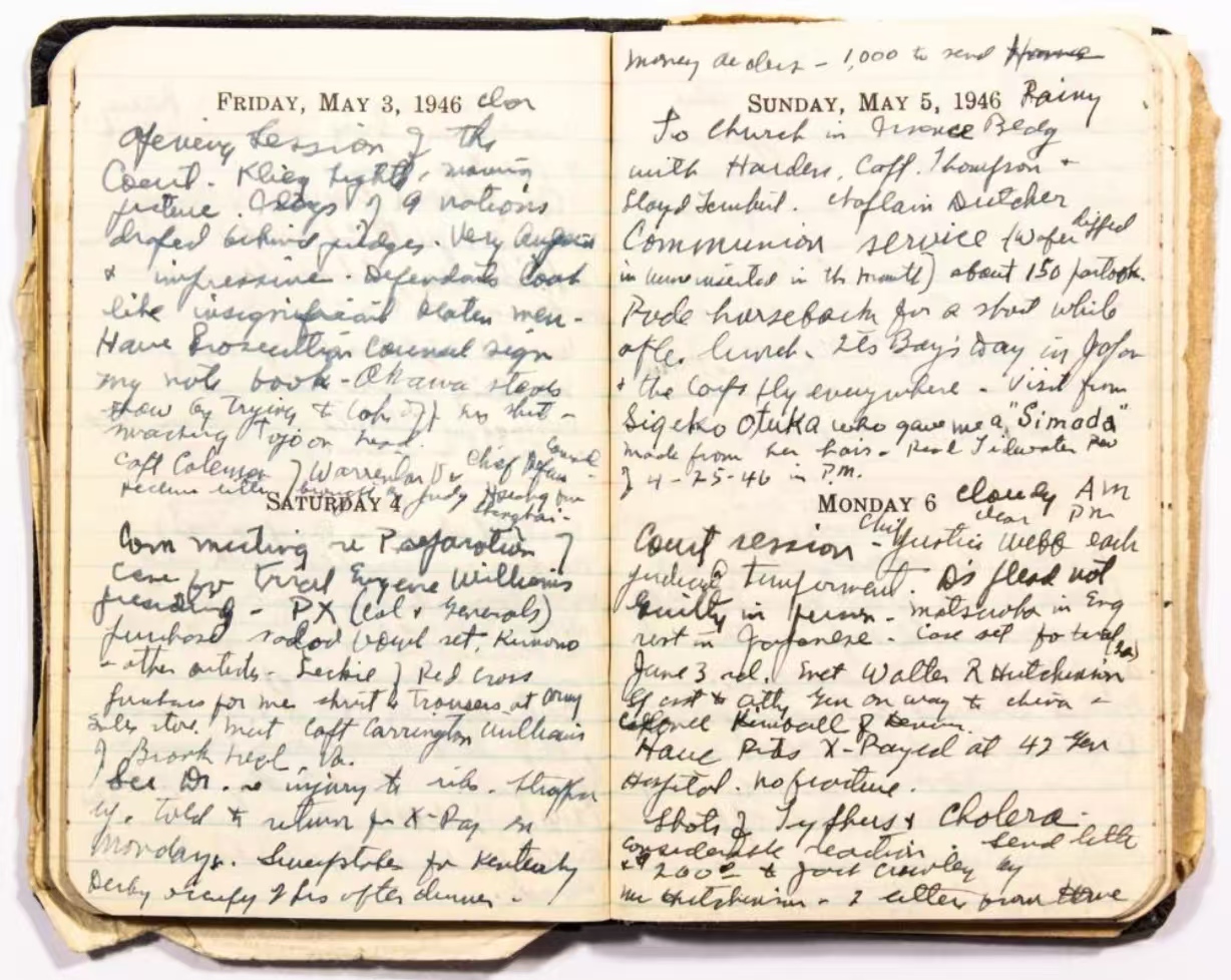记者从侵华日军南京大屠杀遇难同胞纪念馆获悉,东京审判时期美国副检察官萨顿的日记近期被发现,由收藏家邹德怀拍得并送抵国内。经初步鉴定,日记为原件,系首次披露。