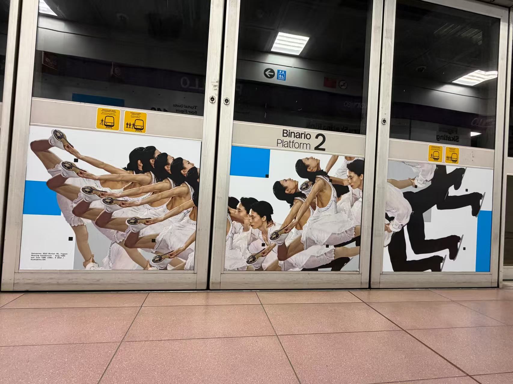 值得一提的是,距离MMC最近的地铁站——波特洛地铁站,已“焕新”成为了“冬奥主题站”。从屏蔽门上的贴纸到墙上的宣传画,再到购票大厅的壁纸,全部围绕短道、花滑、速滑、冰球等项目“做文章”。在屏蔽门上方记录的历届冬奥会短道速滑冠军中,记者看见了大杨扬、王濛、周洋等前国手的名字,武大靖2018年冬奥会创下的男子500米赛会纪录也赫然在上,前中国双人滑世界冠军庞清/佟健的比赛图片则出现在屏蔽门上。
