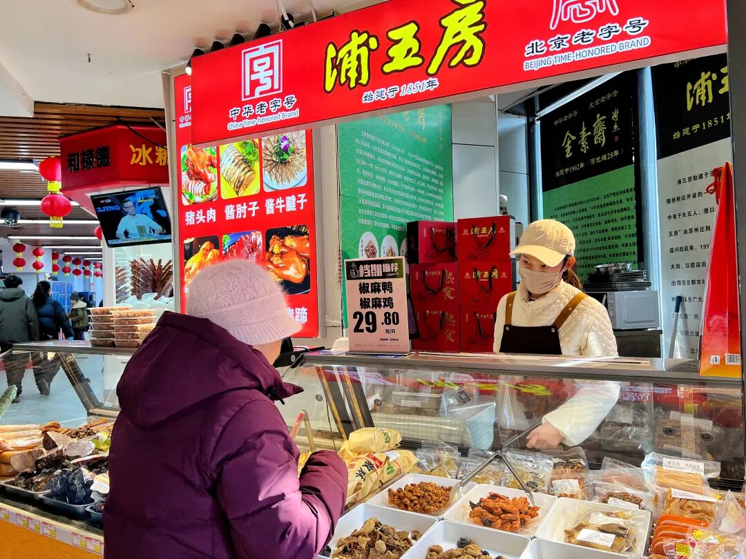 熟食酱货是京味年货中的“重头戏”。东城区老字号云集,近期各家熟食档口前都排起长队。在奥士凯物美(朝菜店)浦五房档口,传承自1851年的南味卤货色泽诱人,秘制酱鸭、酱肘等产品腊月销量较平日翻倍,不少货品需提前3日预订。“老味道几十年没变,家里过年少不了这一口。”正在采购的老顾客刘阿姨说。