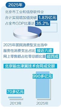 “2025年,北京市高精尖产业发展稳中有进,工业和信息软件业合计实现增加值突破1.8万亿元,占全市GDP比重达到35.2%,对全市经济增长的贡献率达六成左右。”北京市经济和信息化局党组成员、副局长刘维亮说。