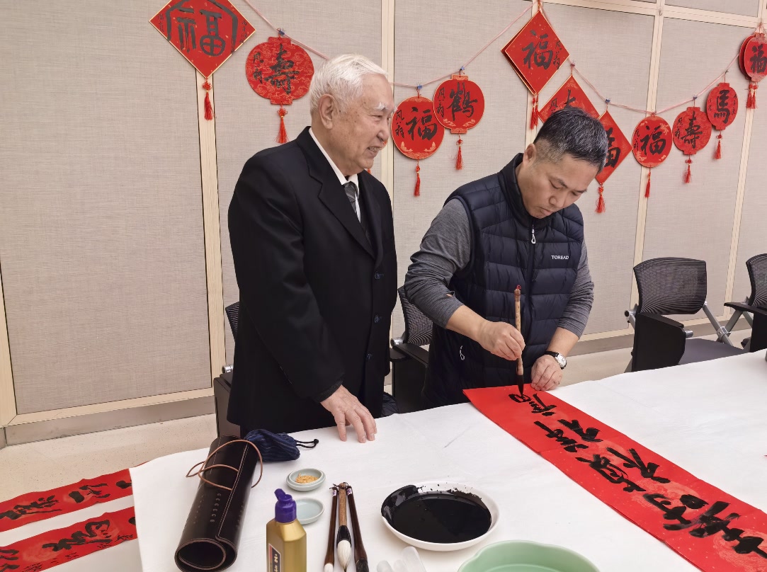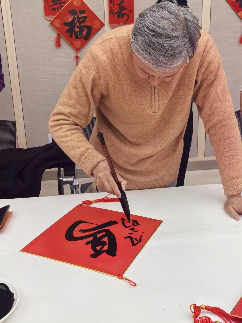活动上,胡振民、冯远、覃志刚、张飙、陈洪武、丁杰、潘文海、郭孟祥、龙开胜、谢小铨、程度共十一位国内知名书画艺术家齐聚一堂,以墨韵书写祝福,以丹青寄托深情,为老教授代表及一线医护技管代表,保安、保洁、物业、外勤等基层工作者代表送上新春祝福——“福”“马”“春”字以及春联等。