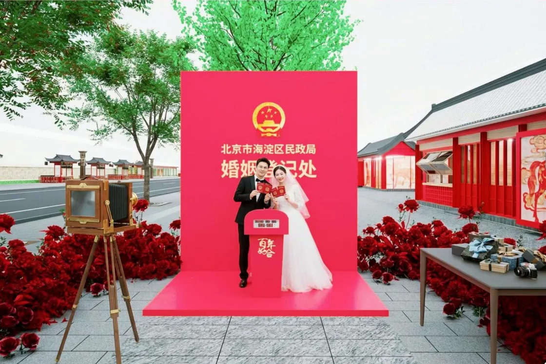 海淀人也太会搞浪漫了!告别传统的登记大厅,海淀文旅集团与海淀区民政局联合推出“同喜同庆,以花为媒”主题领证活动,届时通过预约的新人将能在同庆街上设立的婚姻登记点领取自己的结婚证。