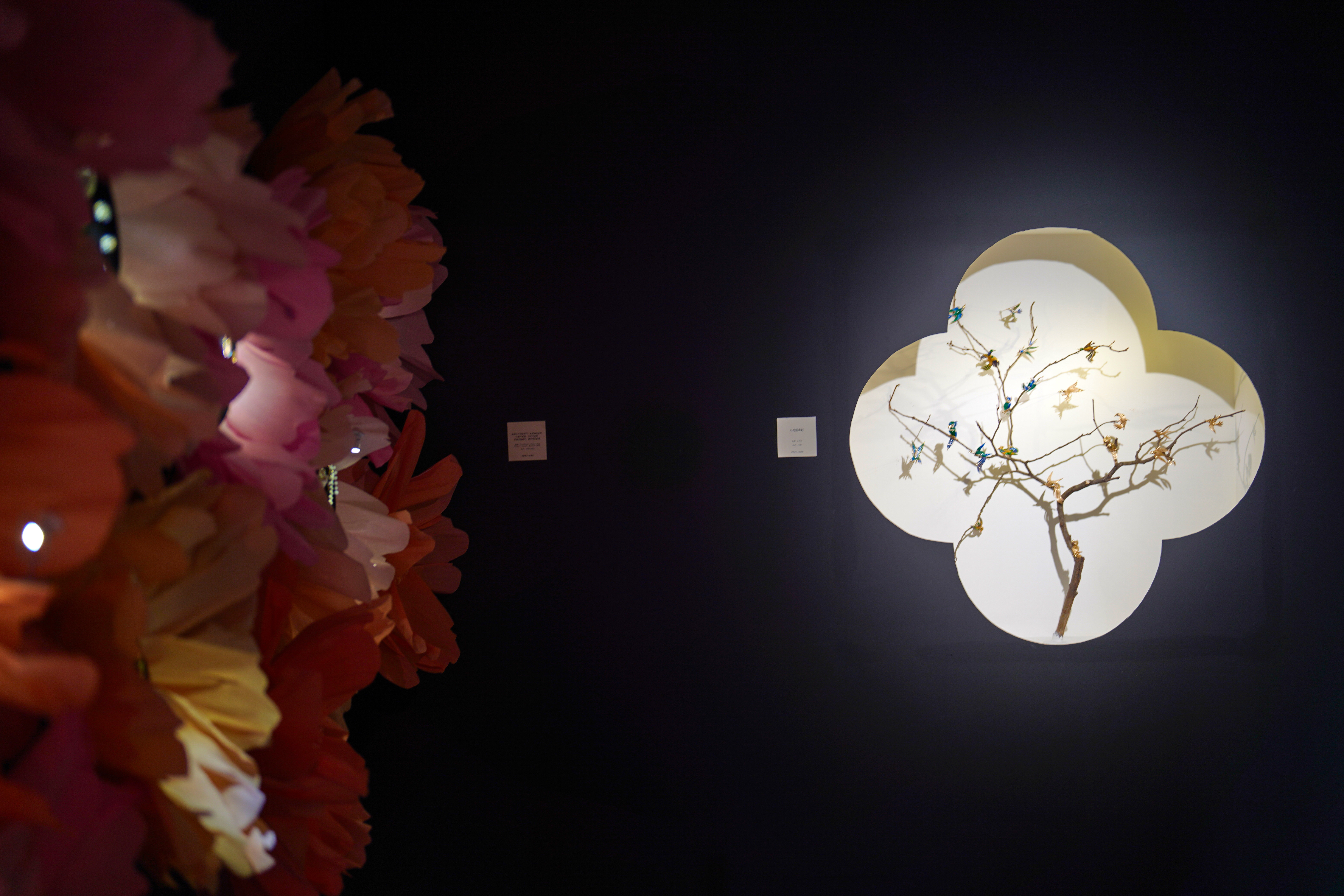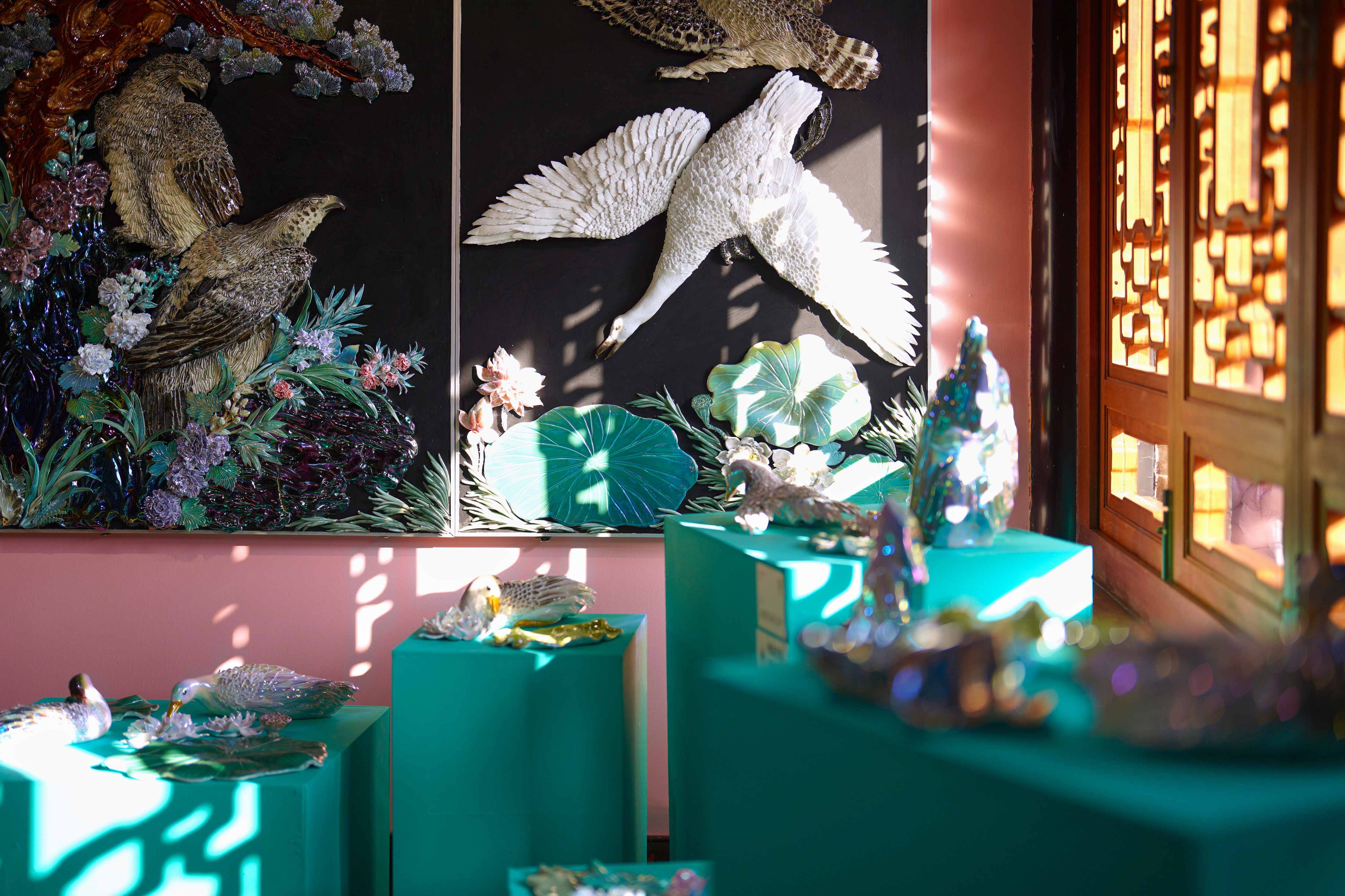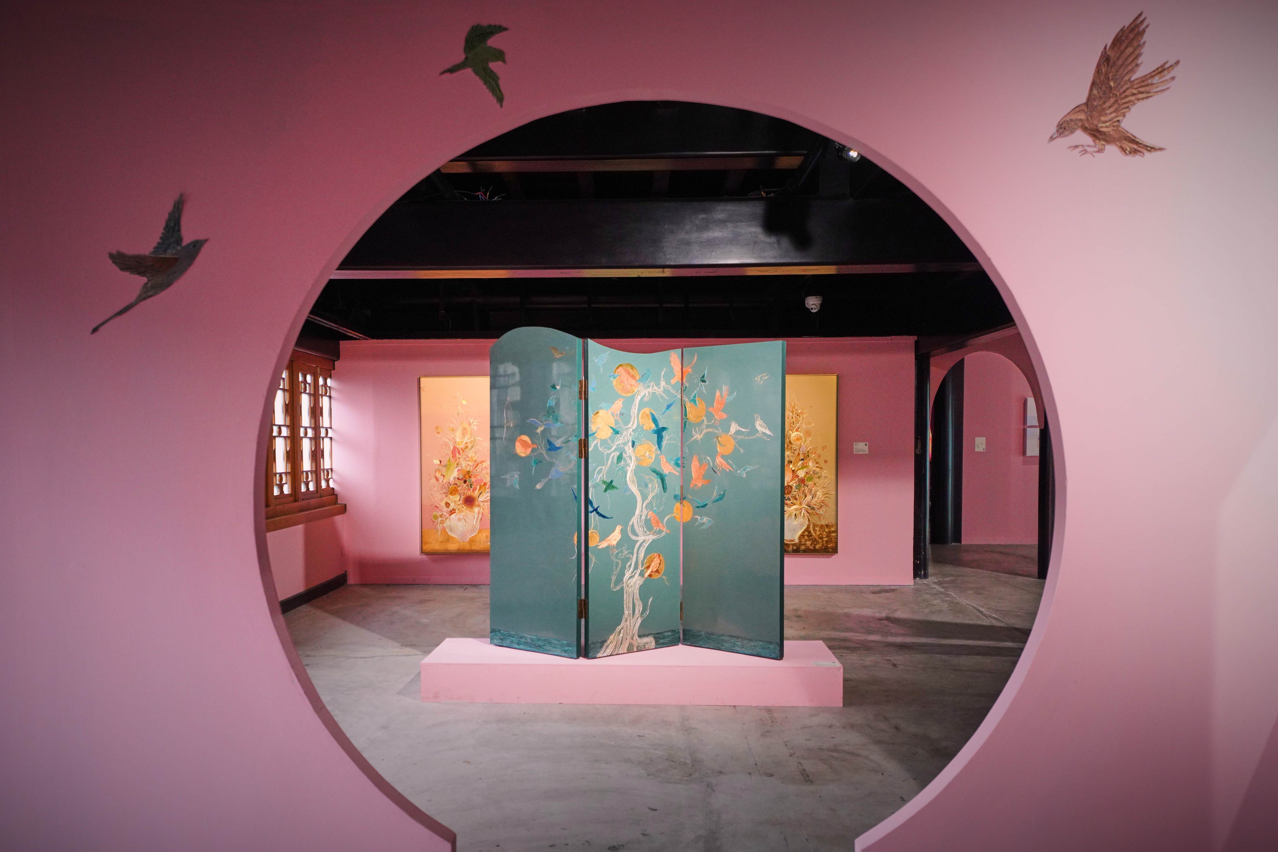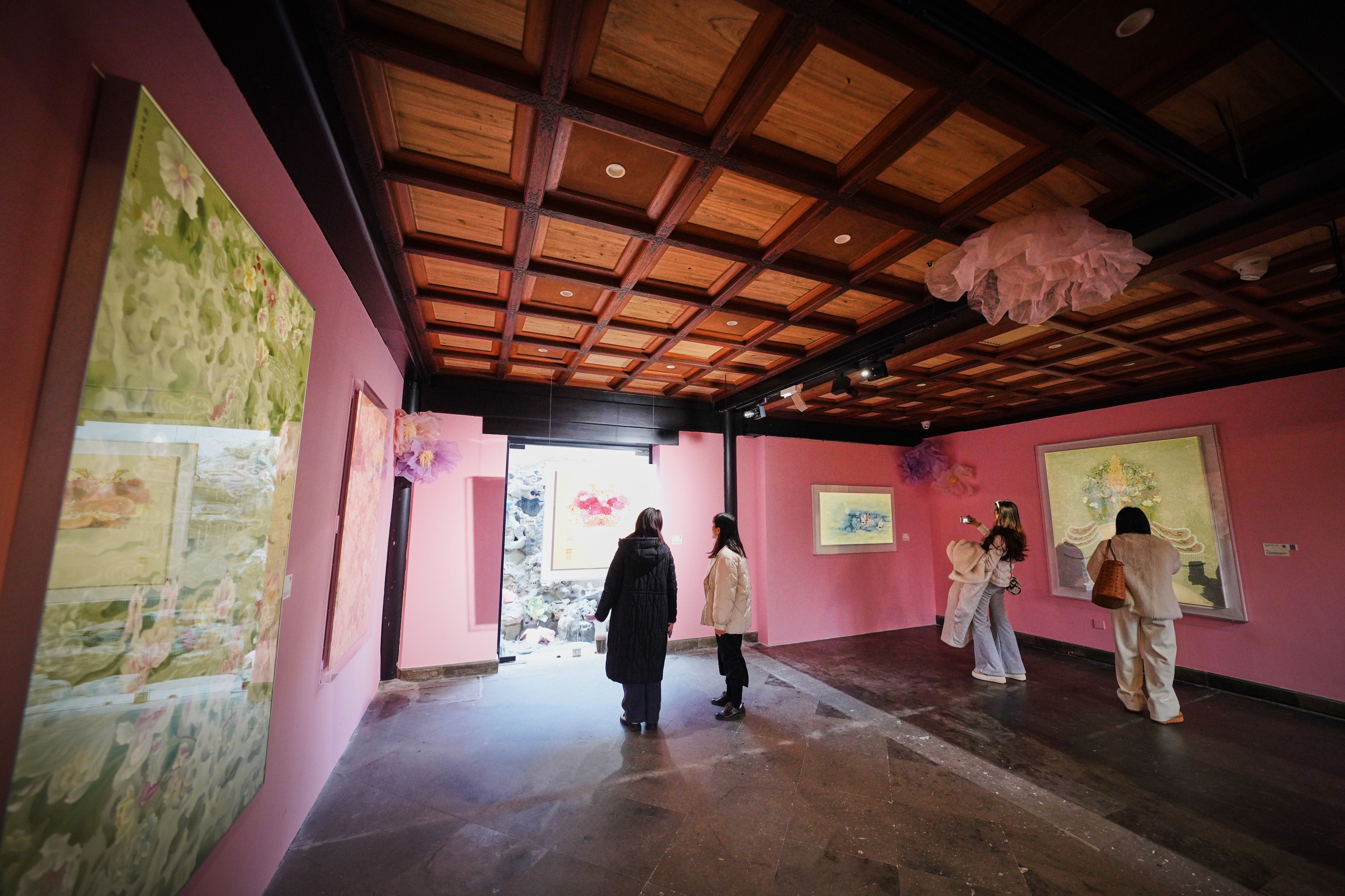 循着汤显祖《牡丹亭》中“原来姹紫嫣红开遍”的清雅词韵,展览以张大千、潘天寿笔下的梅桃、荷花真迹为引,汇集十余位当代艺术家的匠心之作,融绘画、雕塑、装置等多元艺术媒介于一体,让古典花鸟于园林雅境中焕发当代表达的新声。