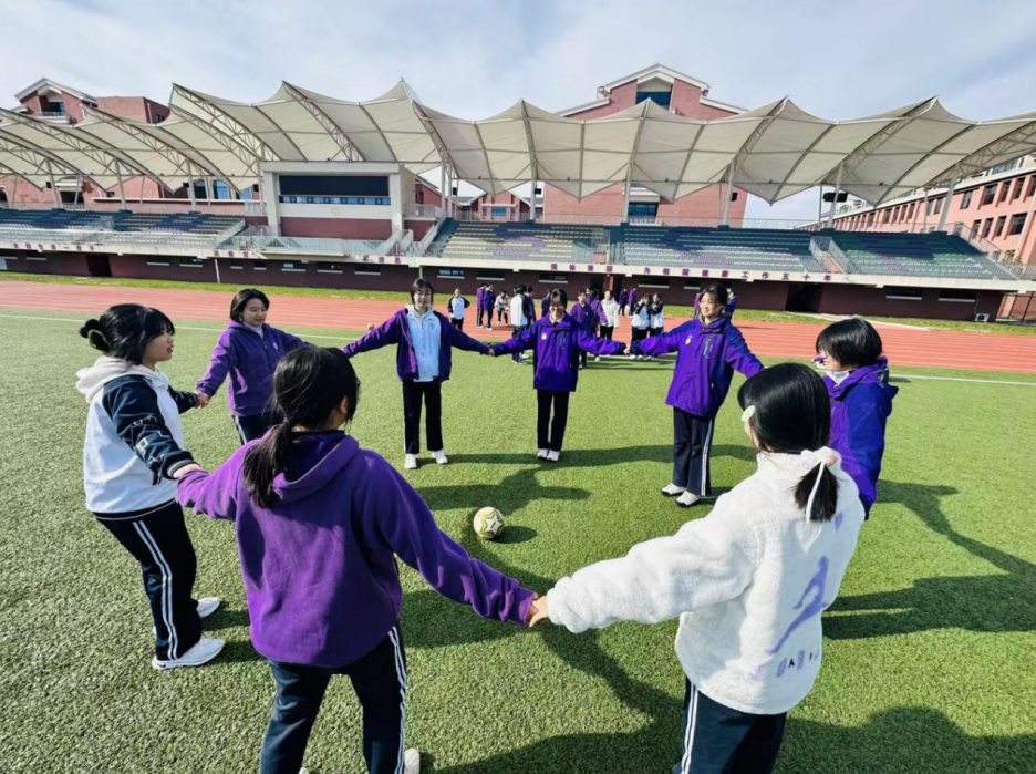 课程与社团上,小学段开设足球兴趣社团,由体育教师设计运球、传球等趣味游戏,每周2次活动,让低年级学生在玩乐中接触足球;初高段将足球技能、规则融入体育课,课后设“兴趣班+校队”梯队,2024年组建的校队每周4次专项训练,队员协作成长势头强劲。