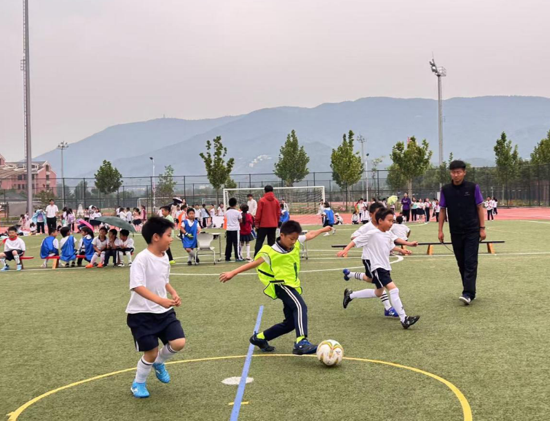 北京市昌平区育新科星路小学自2022年建校伊始,全力营造浓郁的足球文化氛围。学校打造足球普惠课程,巧妙融合足球基础技能训练与趣味体育游戏,每学期如期举办足球班级联赛与趣味足球挑战赛,确保同学100%参与其中,让足球的魅力深植于同学心中。