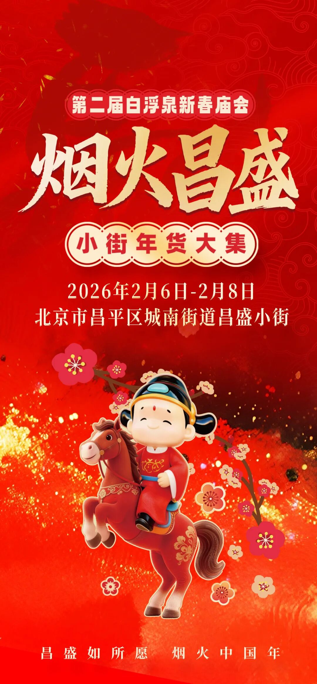 2月6日至8日不妨奔赴昌平区昌盛小街,一起解锁最浓年味,共同留存最暖记忆。不见不散!