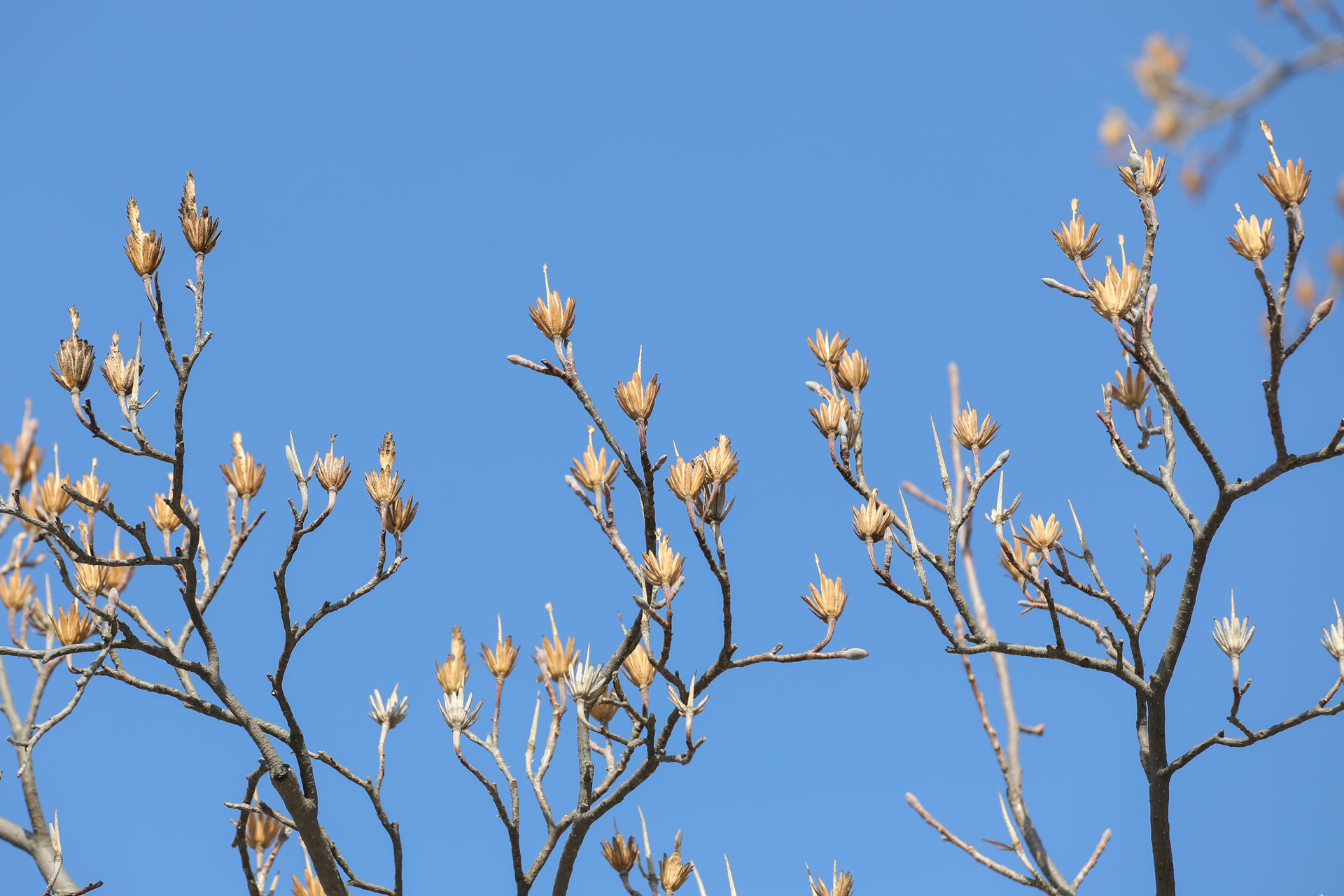 感觉在北方,杂交鹅掌楸在冬天会更显眼一些。首先和很多行道树相比,它的种植没有那么广泛,不是很常见;其次在其他几个季节,草木葱茏,百花争妍,它完全被淹没在花海树海之中。