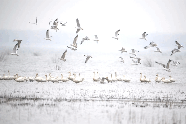 这里生态环境优良,是天鹅理想的越冬场所,也是摄影爱好者创作的天堂。