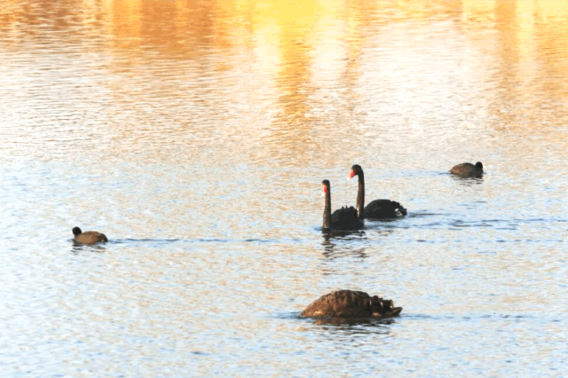 如果说白天鹅是冬日的过客,那么唐岛湾的黑天鹅就是这里的常驻居民。全年可见的黑天鹅群舞,是公园动人的风景。还有黄嘴白鹭、白嘴海雕等珍稀物种,它们与黑天鹅家族和谐共处,鸟鸣声此起彼伏,更添生机。