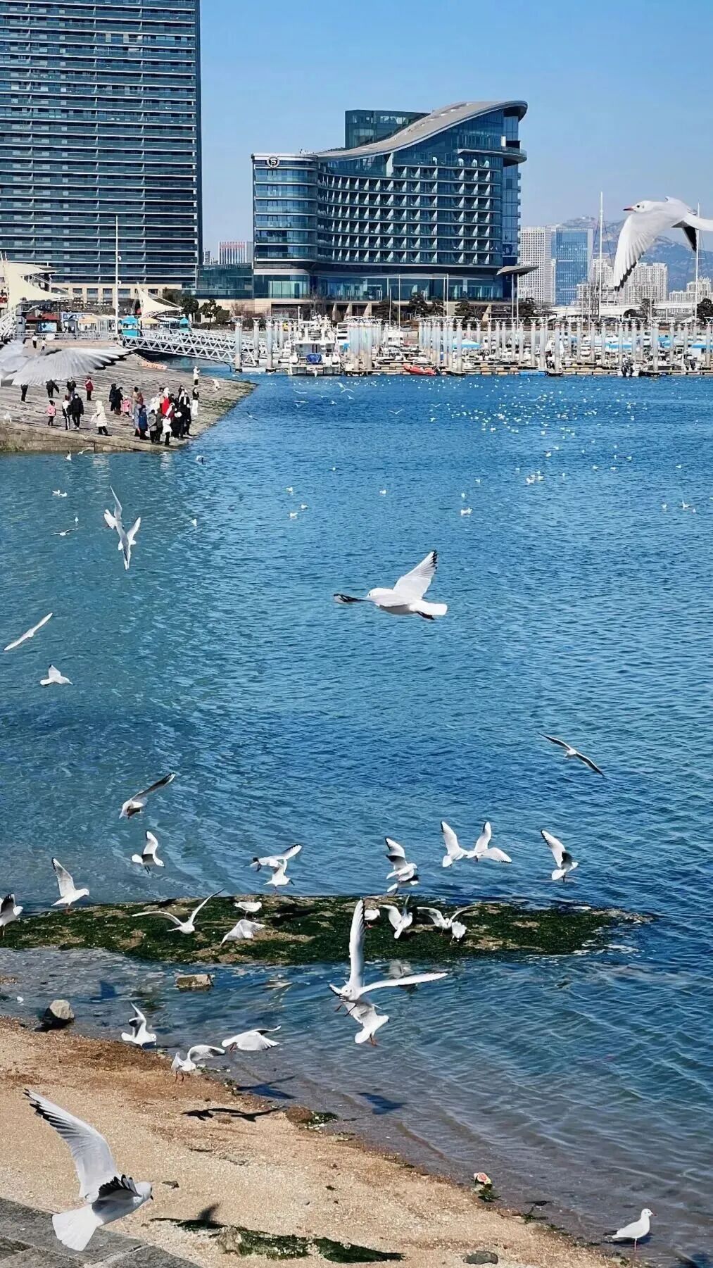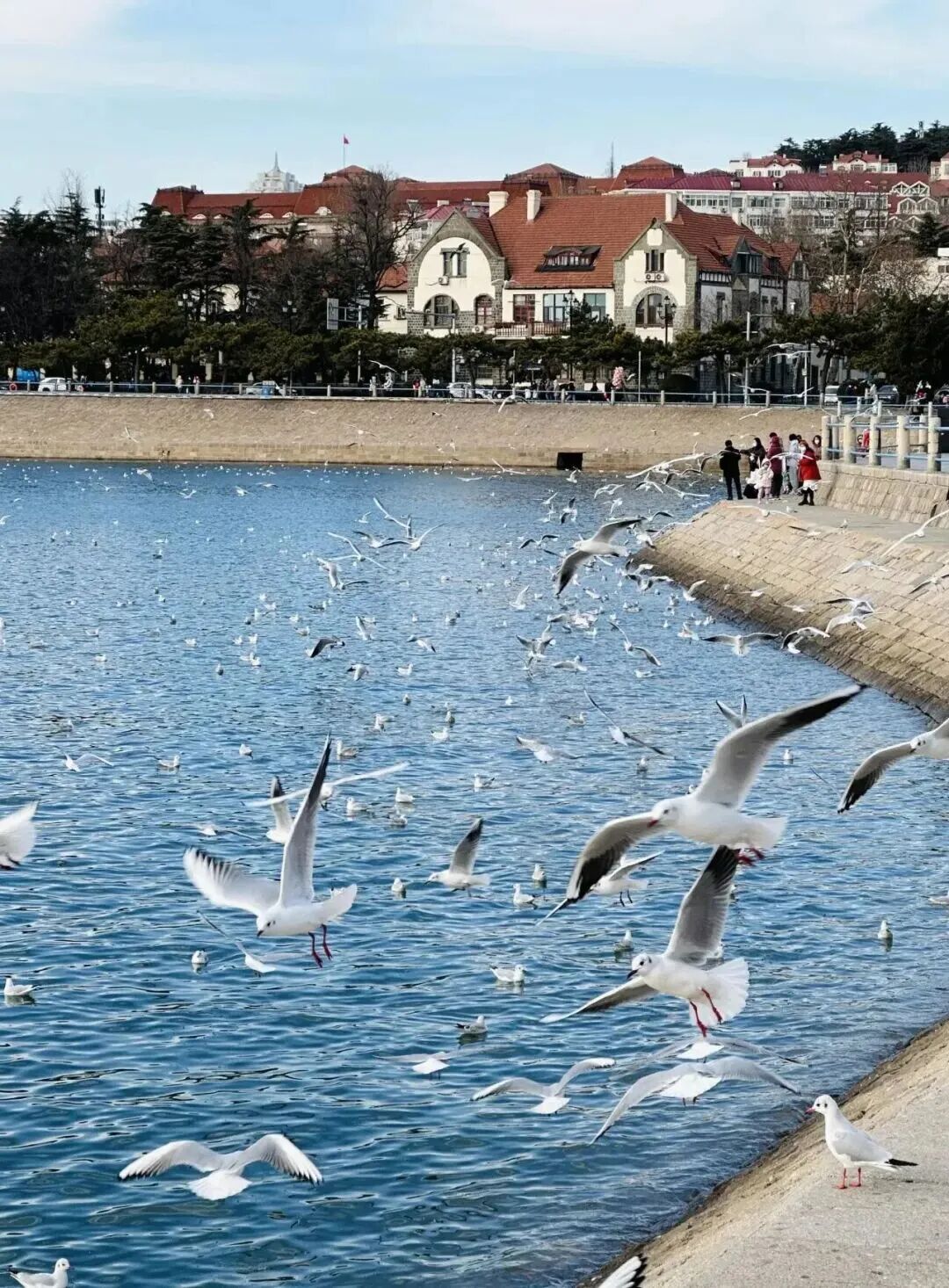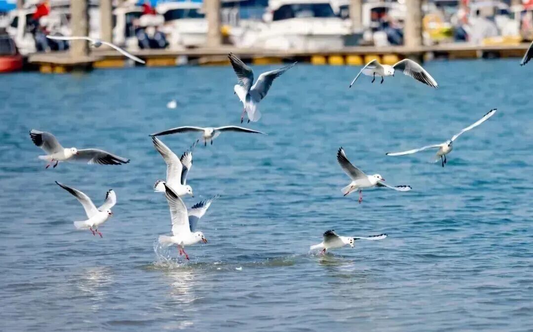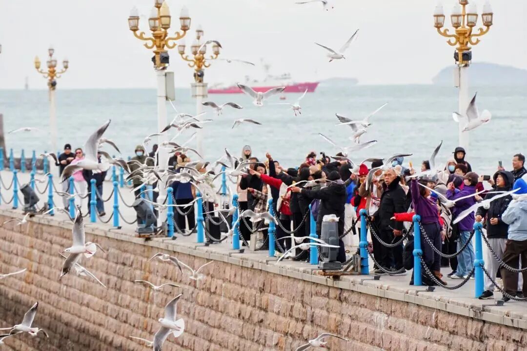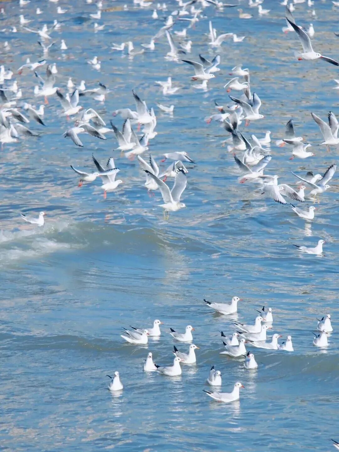 每年11月和12月是海鸥初到青岛的阶段,次年1月至3月则是海鸥聚集的高峰期,万鸥齐飞、盘旋争食的壮观场景时常上演,随手一拍都是大片。
