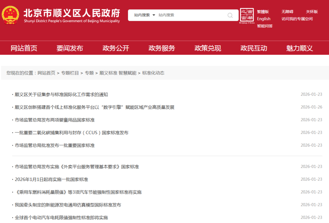 1月26日,顺义区首个线上标准化服务平台——“顺义智慧,精准赋能”标准化服务平台正式上线运行。平台旨在破解中小企业在标准获取、理解、制定与应用中的痛点难点,将标准化服务从线下“精准服务站”延伸至线上“全域赋能网”,为区域产业高质量发展注入数字动能。