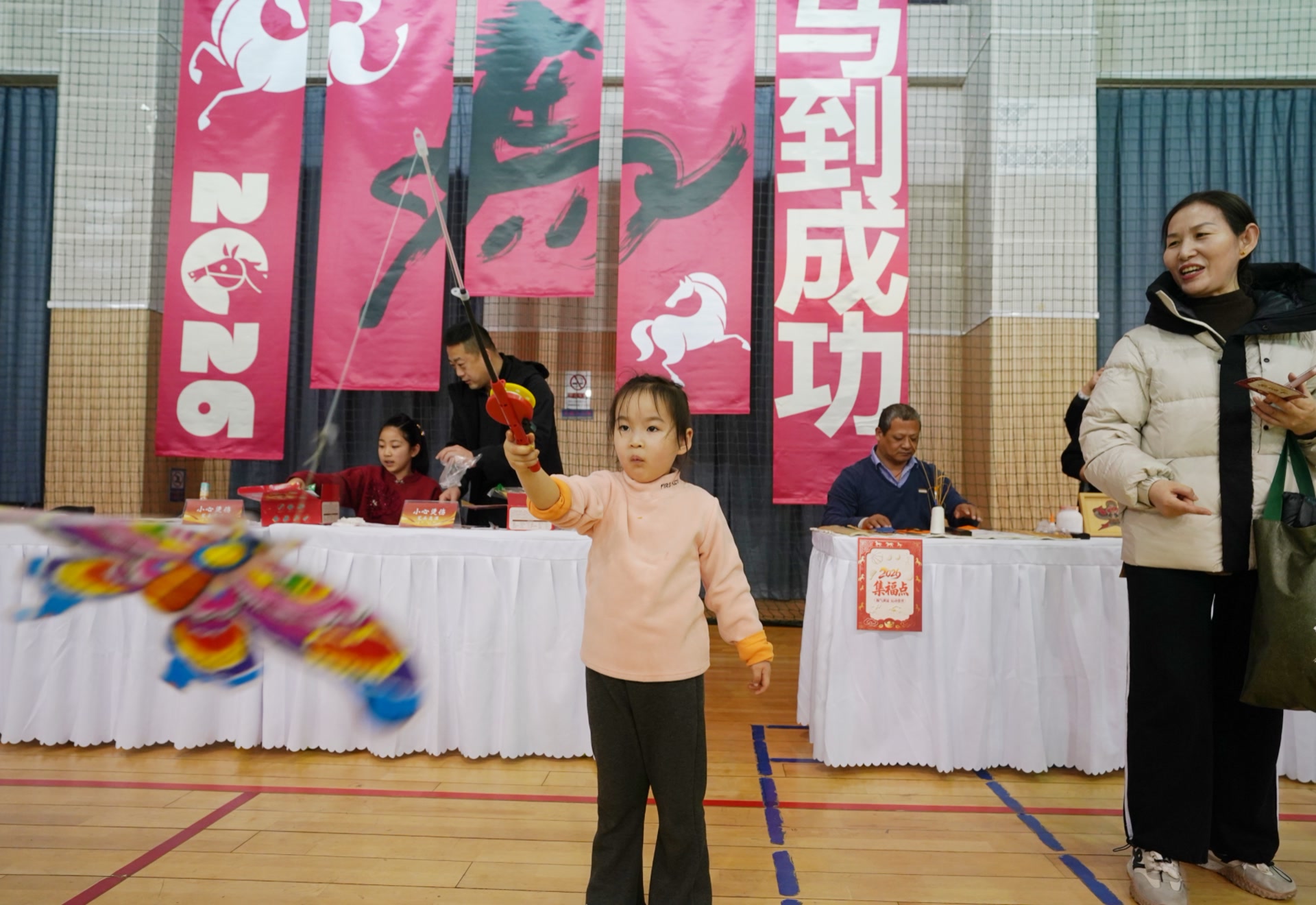 传统文化活动项目也在这里排布开来:射击、投壶、套圈、拓印福字、制作曹氏风筝、做糖画……人们纷纷体验,在指尖传承传统文化,将新春的美好祝福收入囊中。