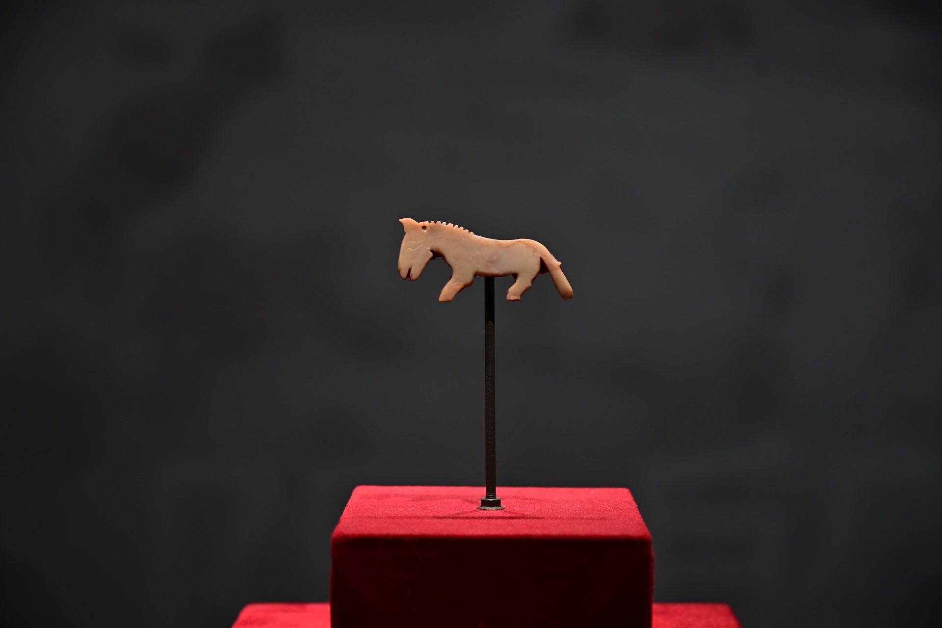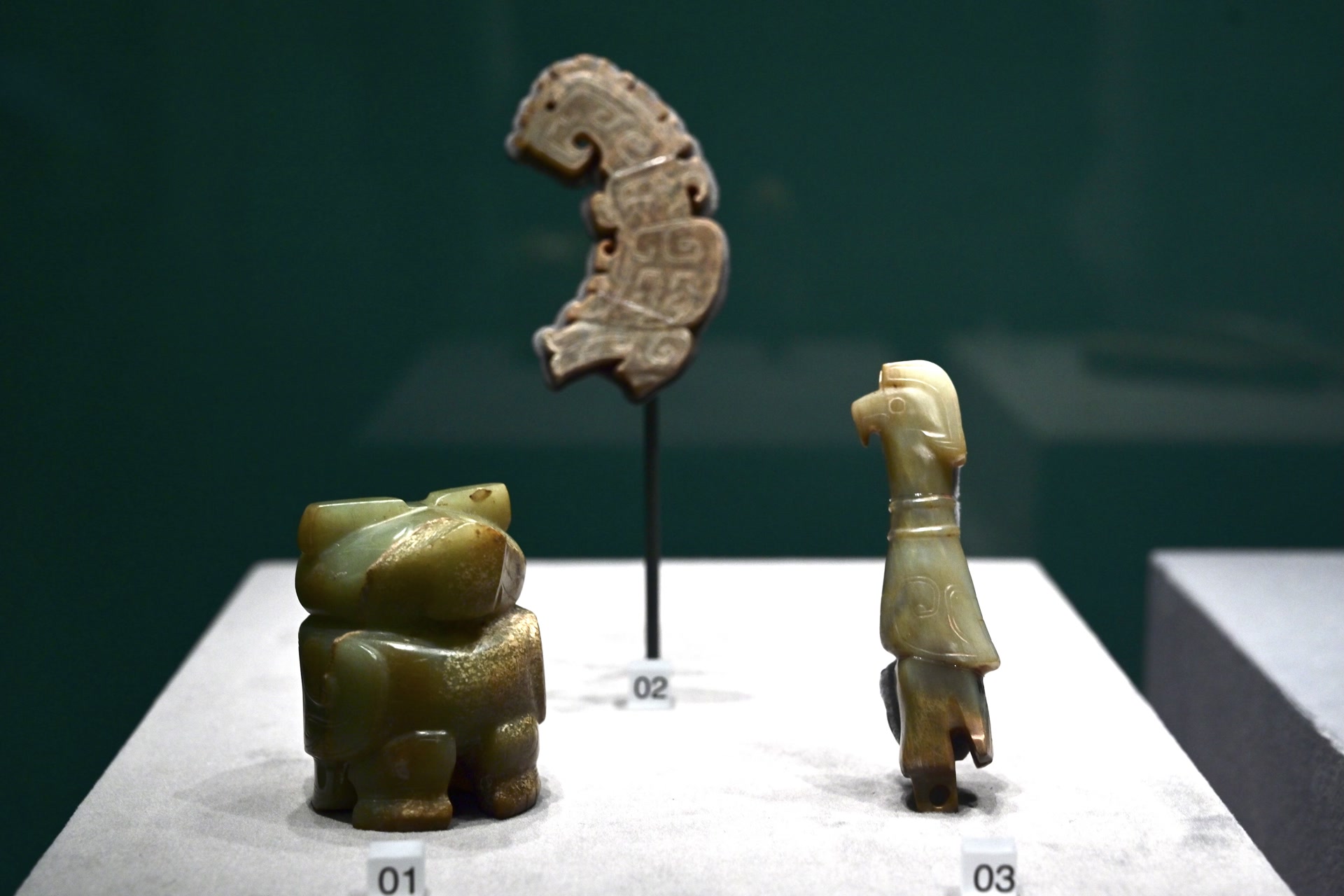奔腾的玉马领衔,妇好的“动物园”搬进展厅。专家介绍,这匹出土于河南安阳殷墟妇好墓的玉马是国内目前所知最早的马形象,它形制小巧,玉质温润,马鬃呈锯齿状,耳后钻有小圆孔,虽造型古朴,但却巧妙呈现出马的灵动姿态。