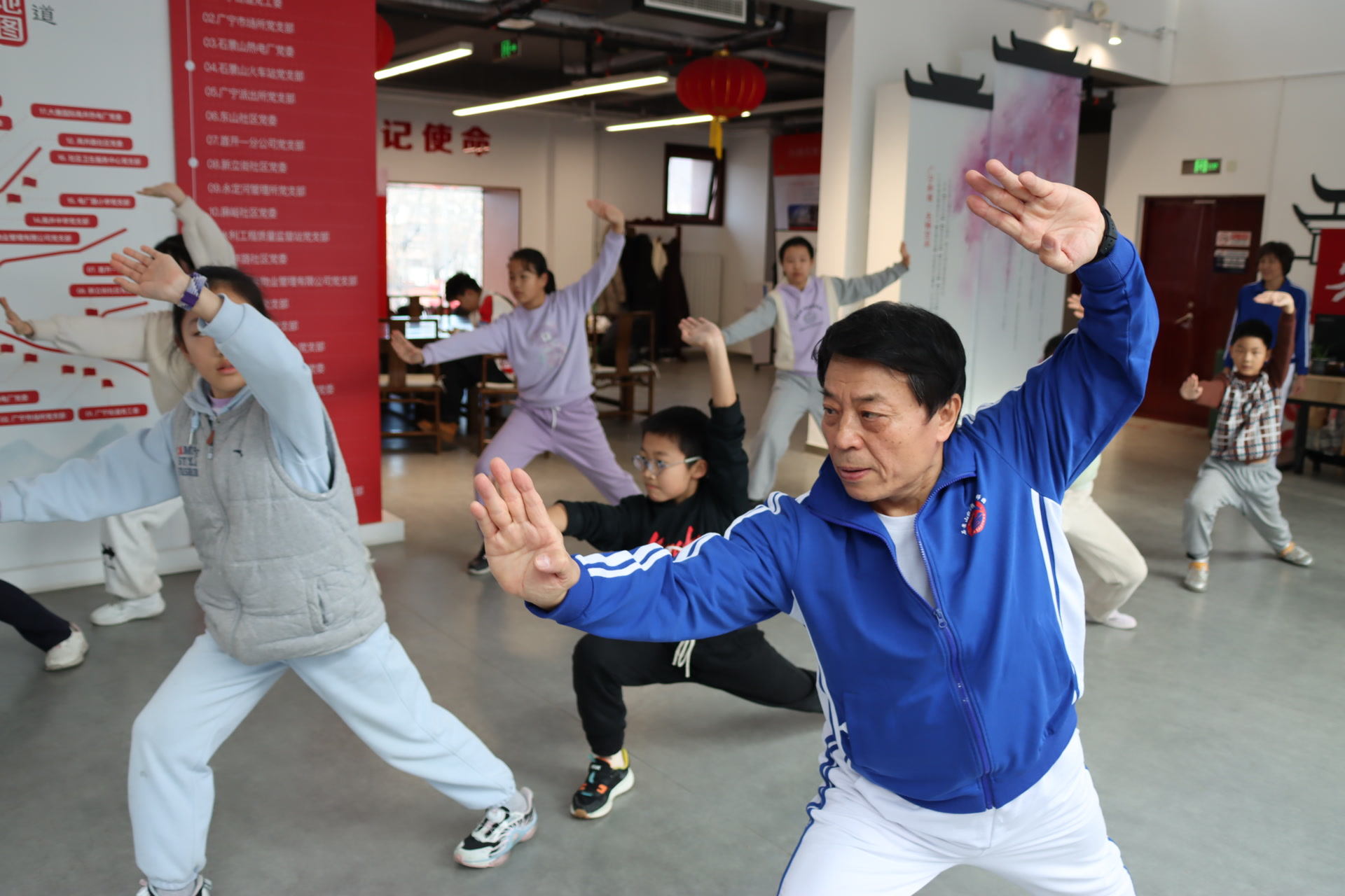 2月5日上午,在石景山区广宁街道综合文化活动中心内,一堂热闹的传统体育课开始了,石景山社会体育指导员讲师团的汪满堂师父正带着他的几位弟子,免费给前来上课的孩子们教授长拳,在春节前夕为全民健身普及做着自己的贡献。