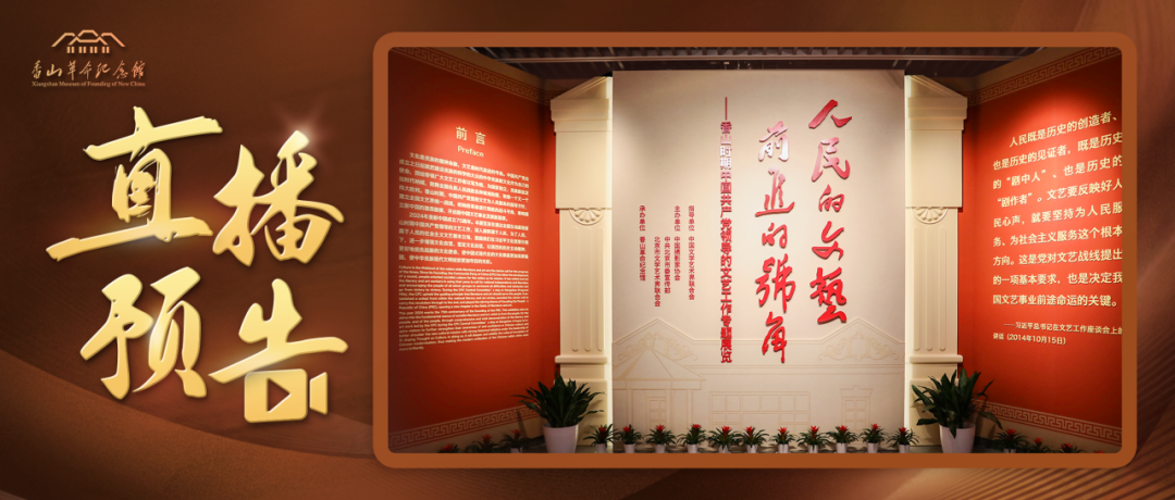2月6日(星期五)上午10:00,香山革命纪念馆微博“云直播”与您准时相约!宣教员将带您一起“云游”香山革命纪念馆,深入解读“人民的文艺 前进的号角——香山时期中国共产党领导的文艺工作专题展览”,与您共同感悟香山时期党领导文艺工作的历史深度与文化价值。