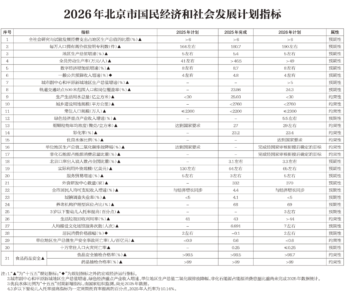 关于北京市2025年国民经济和社会发展计划执行情况与2026年国民经济和社会发展计划的报告