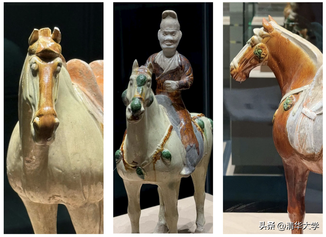 左、右为唐代三彩马;中为唐代三彩骑马俑 艺术博物馆四层12-14号展厅 中国之中:中原古代文明精粹