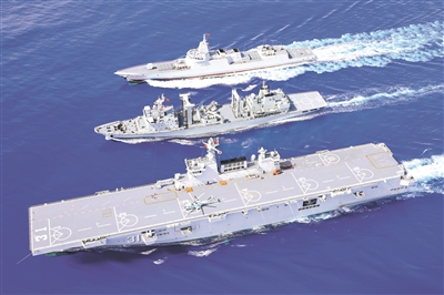 ↑冬日,海军某支队舰艇编队开展海上补给训练。乔晨曦 摄