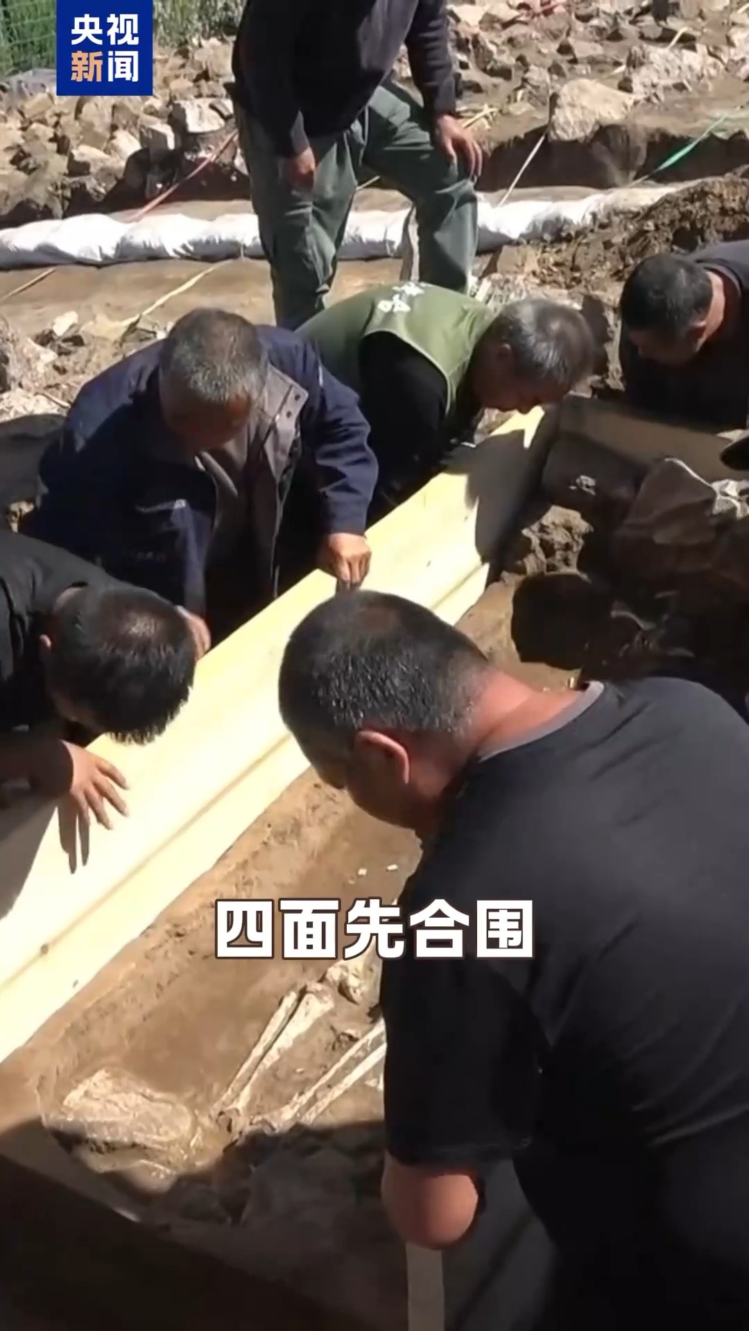 将预制好的木板,现场拼接,四面先合围,墓保持原地不动。