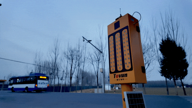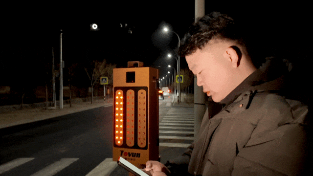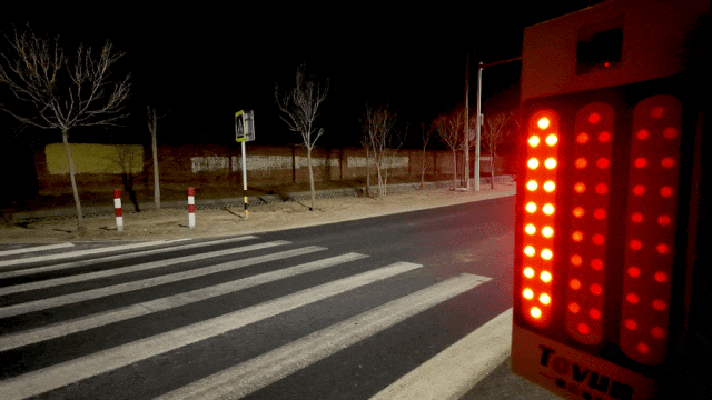 白天,监测器处于静默状态。夜间无车时,它以固定频率黄闪警示。一旦检测到路口任一方向有车辆驶入,系统立即切换为红闪模式,高频强光可瞬间照亮路口。同时,情报板会根据来车方向,精准显示“前方路口减速慢行”或“主路来车减速慢行”的警示语。