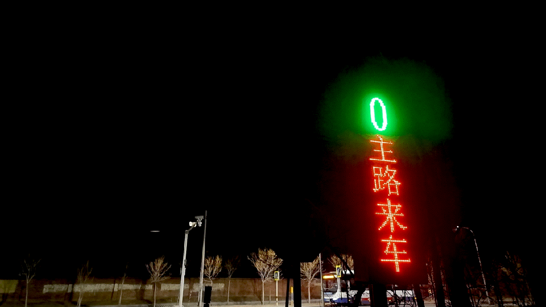 顺顺提示:夜间行车遇安装“智能哨兵”的路口,黄灯闪烁时可正常通行,红灯闪烁则表示其他方向有来车,请立即减速,谨慎通过。