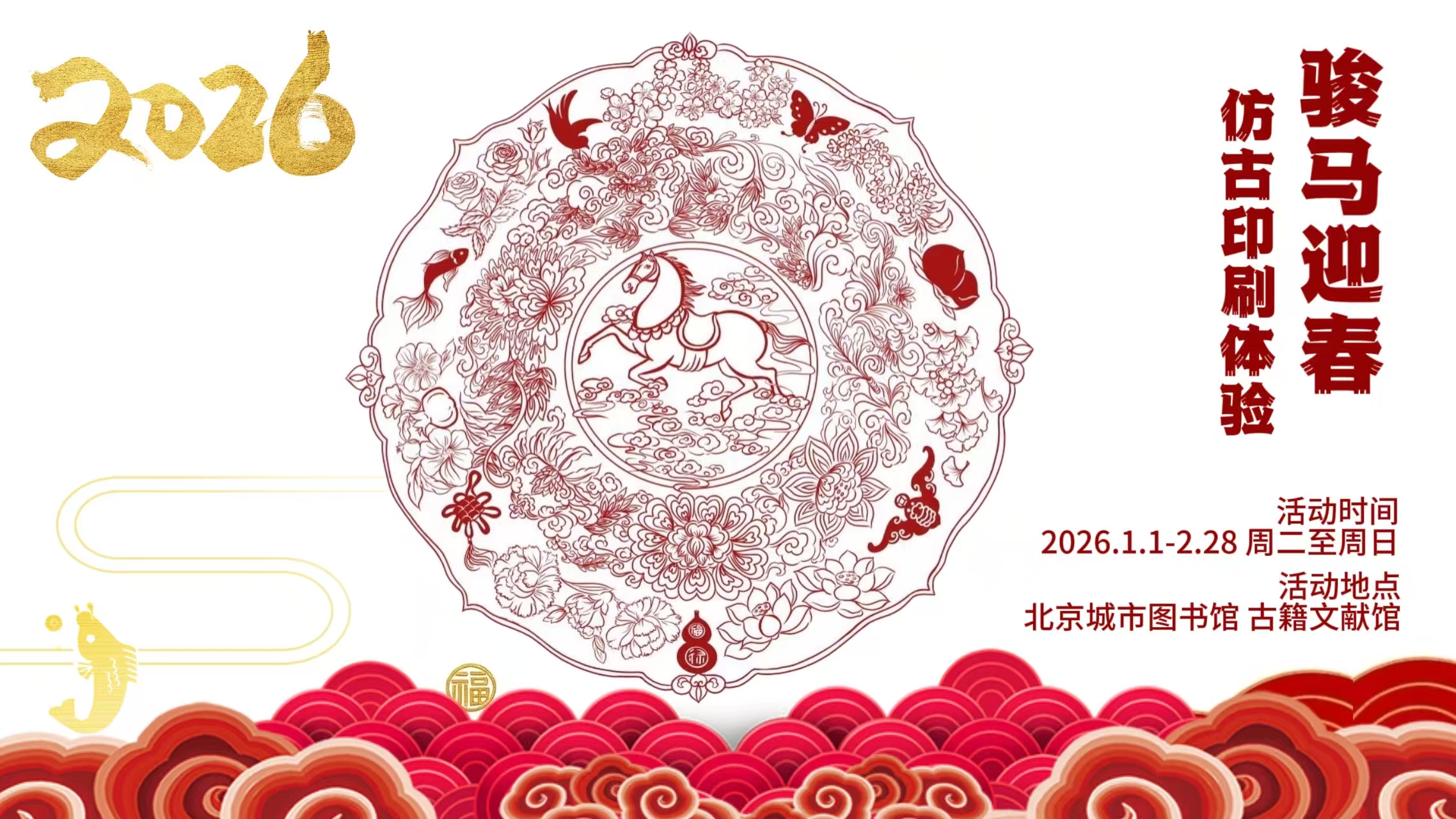 书香浸润年味,年俗点亮新春。2026年马年春节假期,首都图书馆推出“云驹览册 文海乘风”主题活动,精心策划了涵盖非遗手作、互动送礼、讲座展览、沉浸体验等近百场文化活动,邀广大读者共赴一场兼具传统底蕴与现代活力的新春之约。