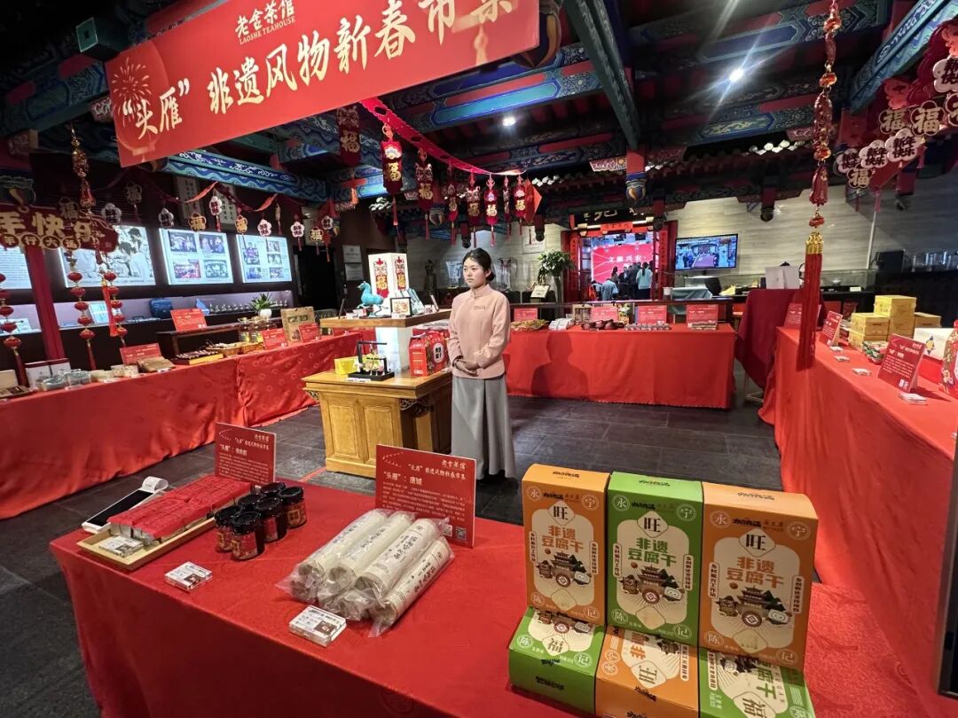 岁末迎新,年味渐浓。2月3日,一场别开生面的“文旅兴农·‘头雁’非遗风物新春市集”启动仪式,在北京老舍茶馆前门店隆重举行。本次活动由中国农业大学继续教育学院、中国农垦经贸流通协会乡村振兴“头雁”分会、北京老舍茶馆有限公司、北京天奉久文化有限公司联合主办,北京市茶业协会、老舍茶馆企业管理中心、中国农业大学湖南及云南校友会“头雁”分会等单位协办。活动以“文旅+非遗+乡村振兴”深度融合为核心理念,自即日起至3月3日,开启为期一个月的“头雁”非遗风物集中展销活动,旨在搭建一个促进城乡资源对接、推动非遗活态传承、助力农民增收致富的综合性节庆平台,也为古韵流芳的大栅栏街区增添了浓郁的年节氛围与文化活力。