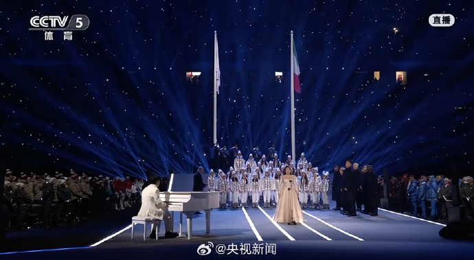 郎朗在米兰冬奥开幕式现场弹琴