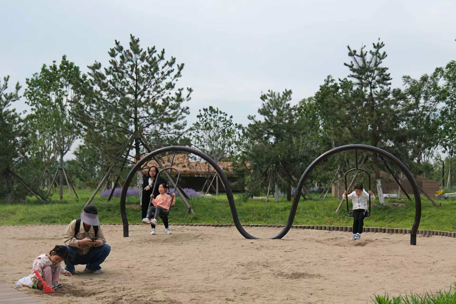 市属各公园巧妙衔接,让传统游戏回归自然课堂,将怀旧情感、遛娃场景融入儿童游艺、林下空间、科普场所等区域,以荡秋千、挖沙子等最朴素的游戏,让孩子们在自然中学会相处、联结情感。