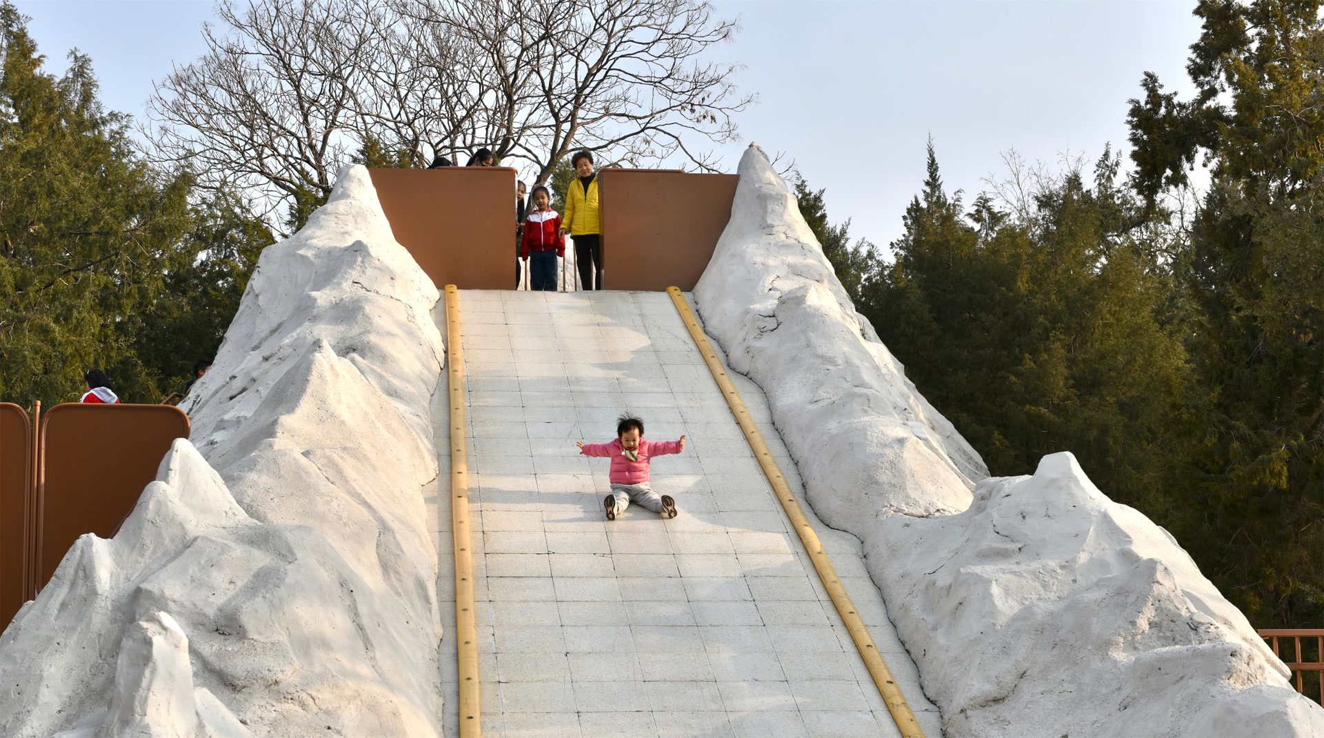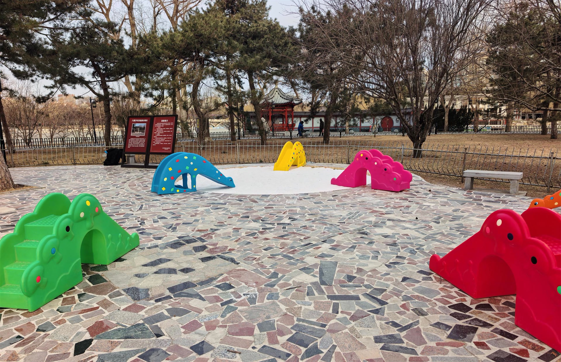 陶然亭公园的“大雪山”是一座承载着几代人童年回忆的标志性石制滑梯,设计模拟了红军长征时翻越雪山的场景,通过设置狭窄的攀爬通道,增添了游戏的挑战性和趣味性,更成为无数孩子锻炼胆量、培养意志的经典场所。沙坑区则是一片充满无限乐趣的“宝藏挖掘地”,孩子们在这里可以完全释放天性、尽情发挥创造力,堆建城堡、挖掘坑道,用每一捧细沙构筑属于自己的梦想世界。在这里,想象力随着每一粒沙的飞扬无限延伸,让简单的游戏变成一场充满探索的旅程。