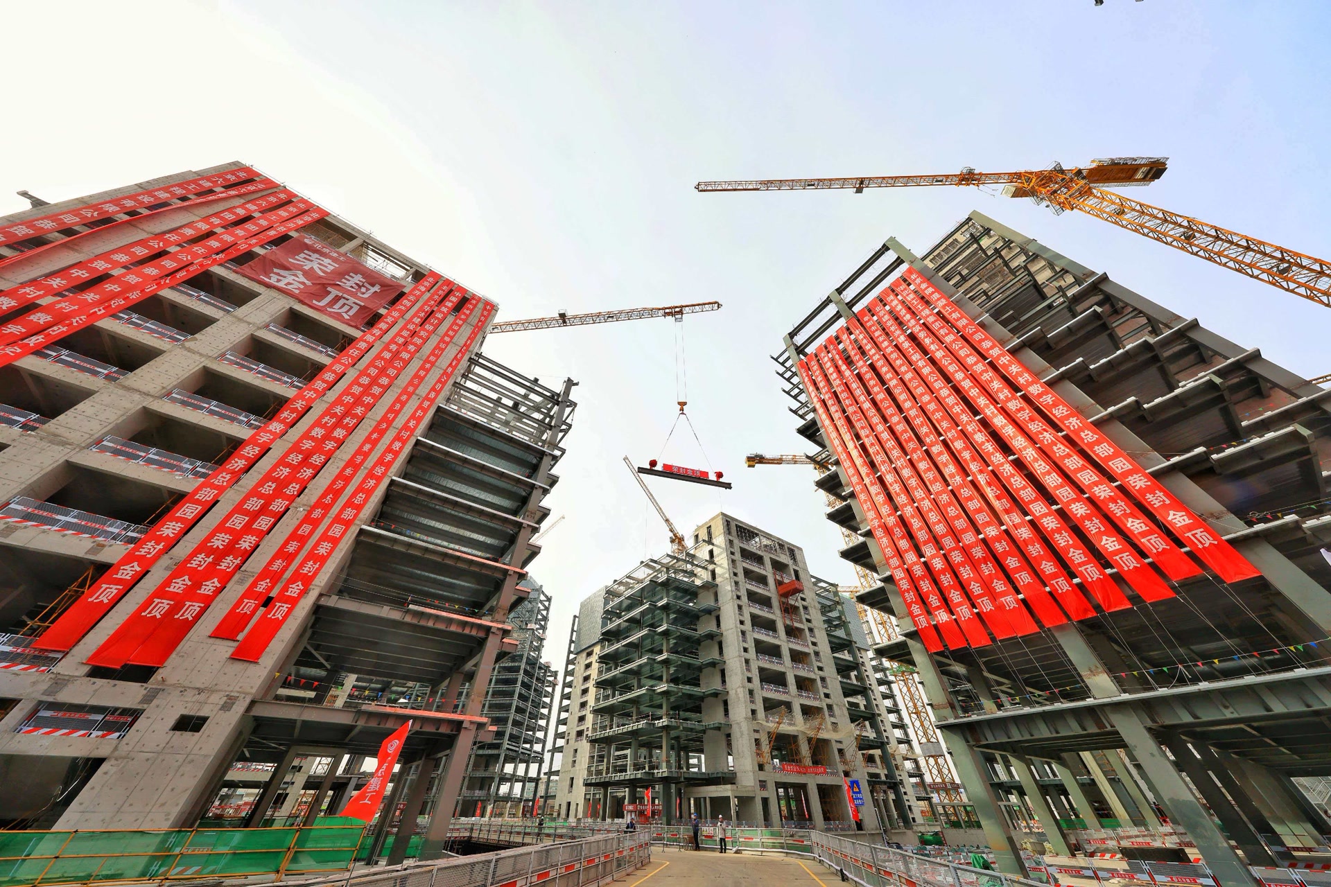 2月6日,随着最后一根钢梁平稳就位,中关村数字经济总部园主体结构全面封顶。这座总建筑面积达40.79万平方米的海淀最大在施TOD产业园区,从去年10月底冲出“正负零”到如今封顶,仅用了3个月。