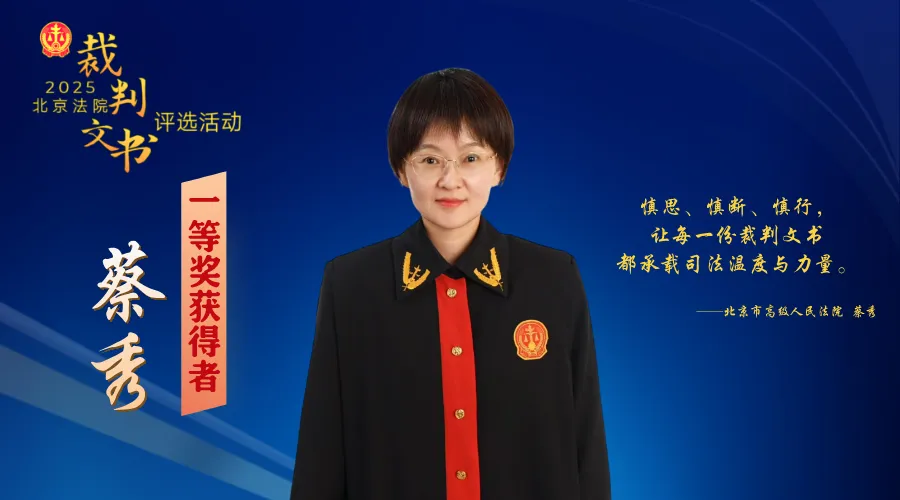 蔡秀,北京市高级人民法院刑二庭审判员,三级高级法官,北京师范大学刑法学硕士。从事刑事审判工作14年,曾六次荣立个人三等功,一次荣立个人二等功,获评“全国法院先进个人”“全国法院办案标兵”“北京市先进工作者”“北京市模范法官”“首都最美巾帼奋斗者”“北京市扫黑除恶专项斗争先进个人”等荣誉称号。撰写的多篇裁判文书获北京法院优秀裁判文书百佳奖,学术论文曾获全国法院学术讨论会二等奖、三等奖、优秀奖,承办的吕某等人强迫交易案入选北京法院参阅案例,张某等人帮助信息网络犯罪活动罪等三案入选人民法院案例库。