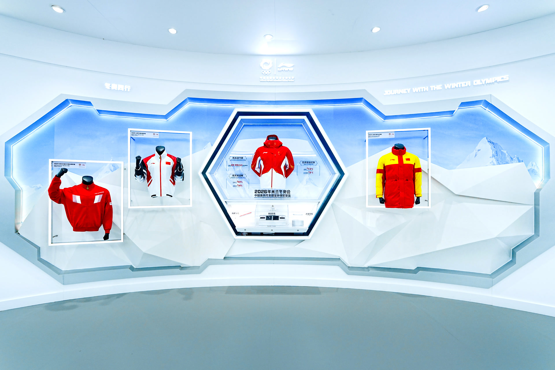 设在“中国之家”内的李宁特展,则以独特方式向世界传递着中国体育的突破精神、创新实力及全新风貌。在特展的“中国荣耀”展区,矩阵式展出了本届冬奥会中国体育代表团室外领奖装备、室内领奖装备以及出场装备。其中的“冬奥同行”部分展示了李宁品牌自1992年起助力中国体育代表团绽放世界顶级冰雪赛场的装备,展现了中国冰雪运动专业装备的进化之路。