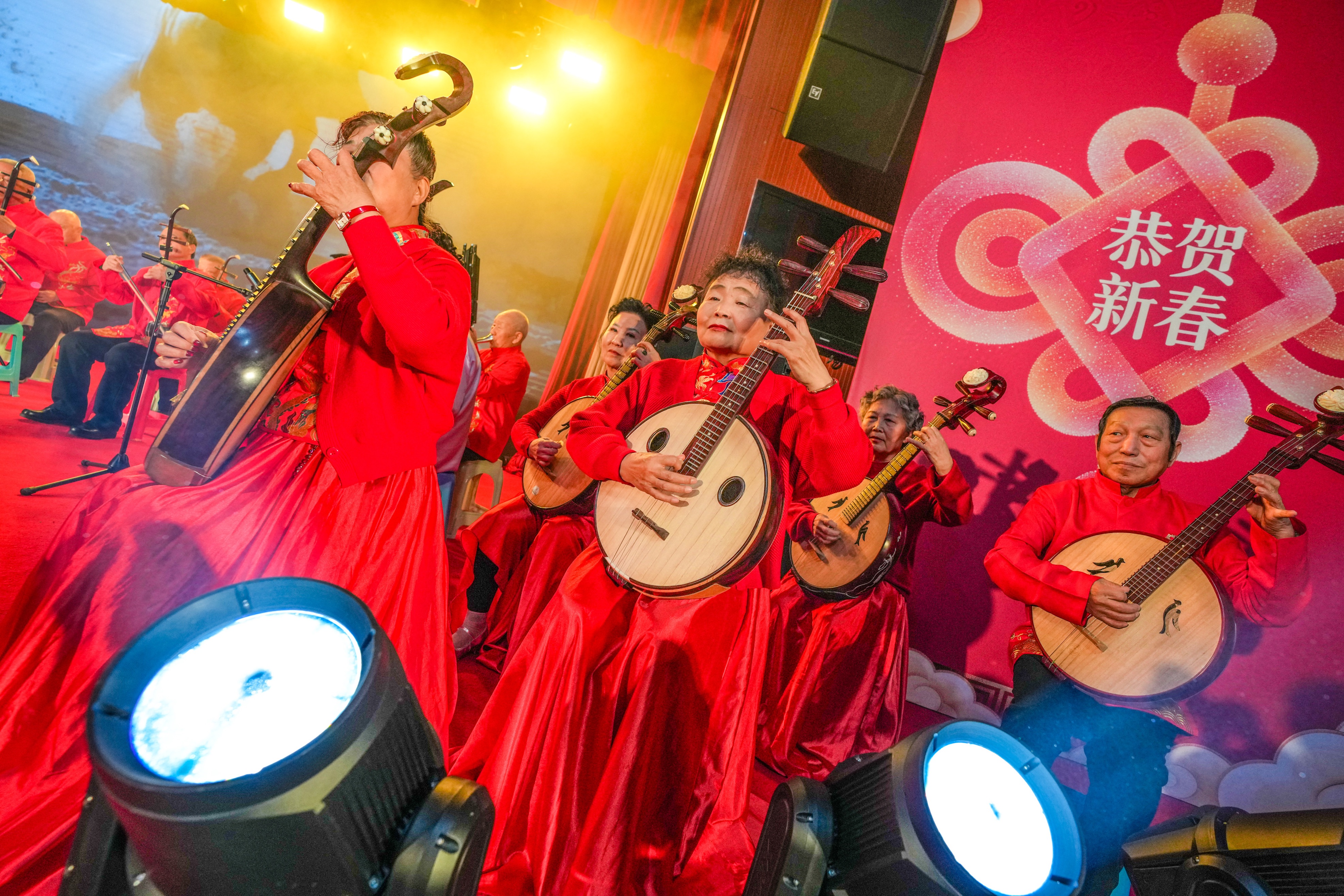 春晚在扇子舞《2026好运来来来》中拉开序幕,20个节目均由居民自编自导自演,形式多样、贴近生活。二胡合奏《赛马》契合马年主题,评剧《刘巧儿》尽显传统韵味,武术《少年强则国强》展现少年朝气,太极扇、手语舞等节目轮番登场,赢得阵阵掌声,居民纷纷用手机记录精彩瞬间。