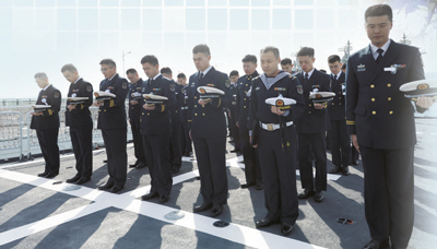 ↑1月30日,海军定州舰为金城龙举行悼念活动。