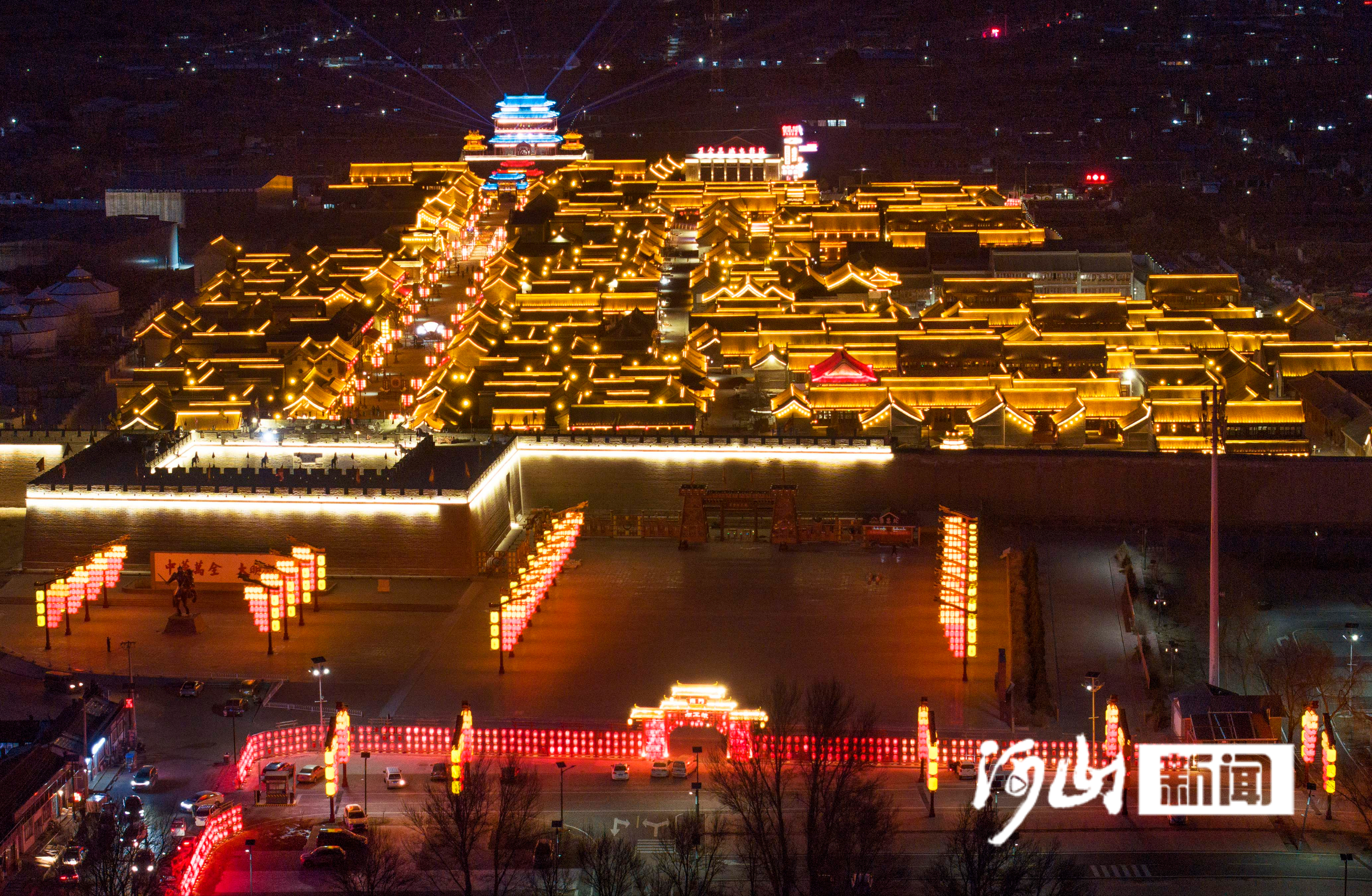 夜色愈浓,万全的新春氛围在古城里愈发浓烈,科技光影与古旧城墙的非遗技艺交织,让六百年的城墙静静诉说过往,也让古城的夜愈发醉人。西南城墙根下,新搭建的《锦绣河家》剧场骨架与古墙相依,沉浸式非遗剧目正紧张排练,演员身着传统戏服走位,将旧堡戏装的匠心与家国情怀,融进每一个细腻桥段。剧场旁,核心剧目《明月万全时》同步筹备,舞台设计依托古城旧街巷、老城墙打造,取材于正统十四年的真实历史——也先铁骑攻破紫荆关,京城告急,右卫城成为万全乃至京西的最后屏障,周崇武将军率三千老弱残兵死守十日十夜,游人将在古墙旧巷间,亲历那段守土护城的悲壮。南瓮城广场上,万全打铁花如期上演,千余度的铁水在匠人手中化作熔金,木拍击勺的刹那,滚烫铁液冲天而起,炸裂成万千流星,火树银花映亮城墙,冷兵器时代的古老技艺,在灯光映衬下,绽放出诗意华彩。数百架无人机腾空而起,在墨色的塞北夜空拼出“大明1625”“马上过年”的字样,科技光影与古城墙的古朴轮廓交相辉映,脚下是六百年的青石板路,头顶是新时代的星河光影,明代卫所的过往与万全的新春盛景,完成一场跨越时空的对话。迎恩门修缮后的城楼化作巨型光影幕布,光影技术将土木堡之变的烽烟、戍卒守城的坚守、张库大道的驼铃、古城焕新的模样,一幕幕铺展在古旧城墙之上,《万全县志》里的边塞过往,不再是纸上文字,而是触手可及的温度。古城中央的玉皇阁正复原修建,新修木构与保留的古基相融,这座让右卫城获“轿子城”美誉的建筑,立于夜色,高于城墙,诉说着古城“因武而生、因商而荣、因文而昌”的历程,与城墙光影连成一片,让整座古城,成了万全新春里一座沉浸式光影剧场。