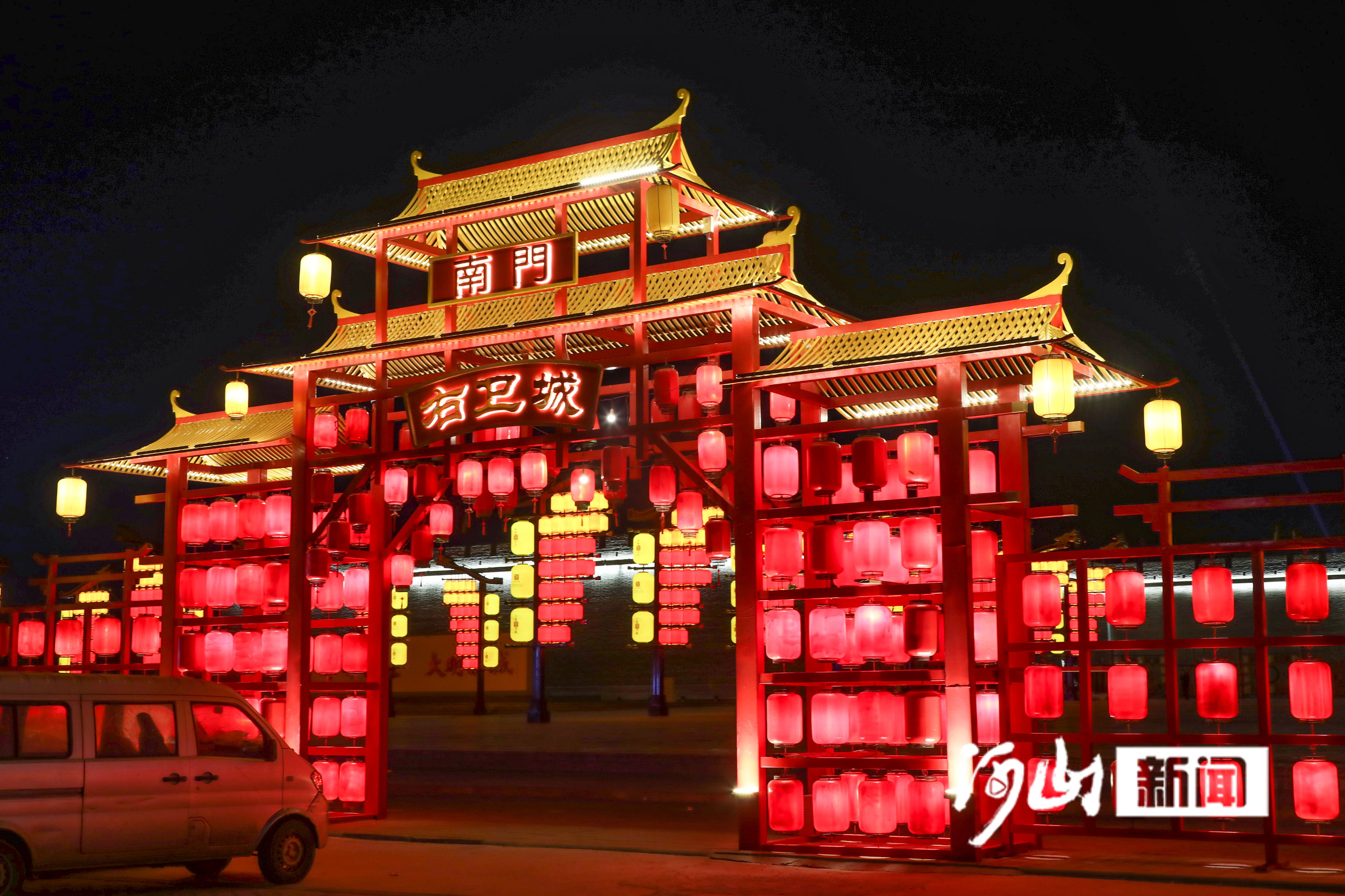晚风轻拂洋河,带着青砖夯土的醇厚气息,也夹杂着古城改造新翻泥土的清新,城墙根的草木在灯光里依稀可见,新抽的绿芽与古旧根须相融,像守了六百年的老友,迎接着万全的新春。站在南城楼广场远眺,长城环路的灯带将古城勾勒成一条璀璨的玉带,与翠屏山长城遥遥相望,漫天灯火映红了塞北的夜空,也映红了万全的新春天际。