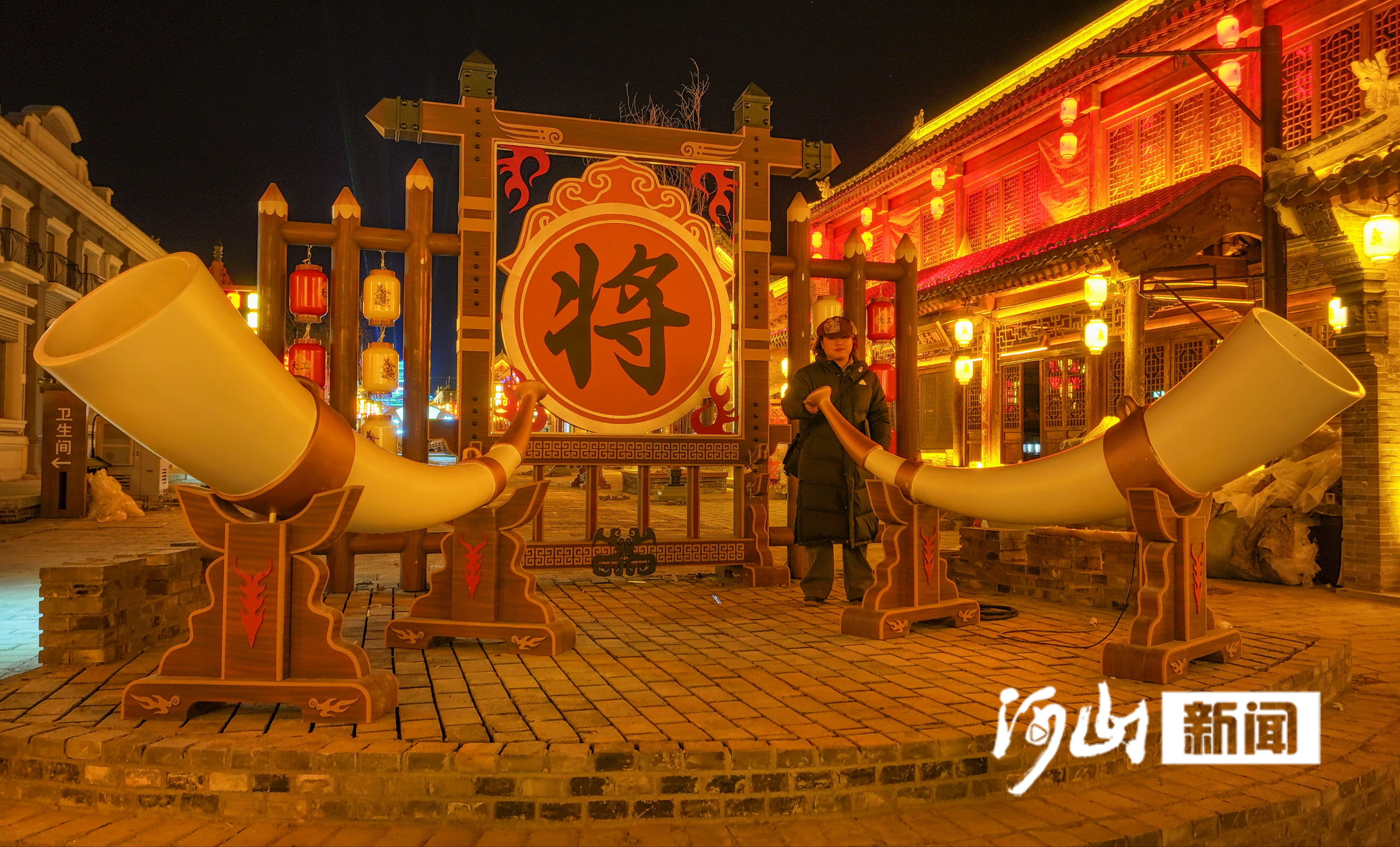 从街巷走向深处,目之所及皆是新貌,却又处处藏着六百年的历史厚重,万全迎新春的喜庆,萦绕在古城的每一个角落。入街游人皆能领到仿明代纸币创业金,在街巷间与人物互动、打卡特色点位,便可兑换演出票、文创好物与新春福礼,让明代的边塞风情,化作趣味满满的新春体验。东粮库旧址改建的长城卫所博物馆,在夜色里透着温柔的光,展陈设计与旧库房建筑相融,这座全国唯一以长城卫所文化为主题的博物馆,馆藏百余件套明代卫所文化藏品,十余件明代铁炮作为镇馆之宝,在展柜中静静伫立,与3D打印的文创火铳隔柜相望。科技展陈让古旧文物焕发出新的生机,全景展示着明代长城沿线的军事防御体系,也诉说着这座古城与万全六百年的共生与变迁。游人扫码自拍,便能定制刻有自己模样的文创小铁炮,让历史与当下在新春夜色里相拥。街巷间,新开的佑卫铜火锅、兴源爆肚,与本地传统饸饹面老铺相邻,麻香、鲜味儿肆意飘散,勾着游人的味蕾;穿汉服的游人穿梭在修缮后的迎恩门与古旧的德胜门之间,灯笼光影落在衣袂上,与古城“城套城、门套门”的明代防御格局相融,恍若穿越时空。城墙根下,万全本地的老人闲坐,看眼前灯火辉煌,手里捏着刚领到的新春福字,笑着说起儿时正月十五的鱼儿灯,今夕的璀璨新景,与《万全县志》里记载的“商埠繁昌,驼铃不绝”的旧光景,在夜色里重叠成温暖的模样,这是古城焕新后的年味,是万全最质朴的新春温情。