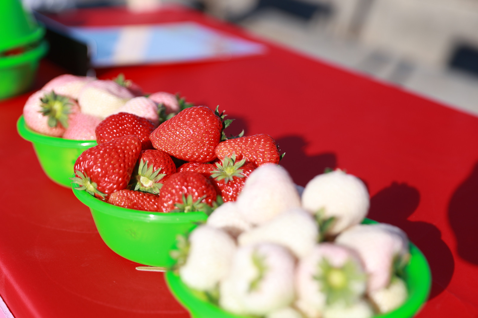当天,苍上科技小院内外人流不断。草莓市集集中展示了本地新鲜草莓及各类衍生品,毛猴、面塑、花馍等非遗手作也同步亮相。不少市民在摊位前品尝、选购草莓,并参与互动体验。