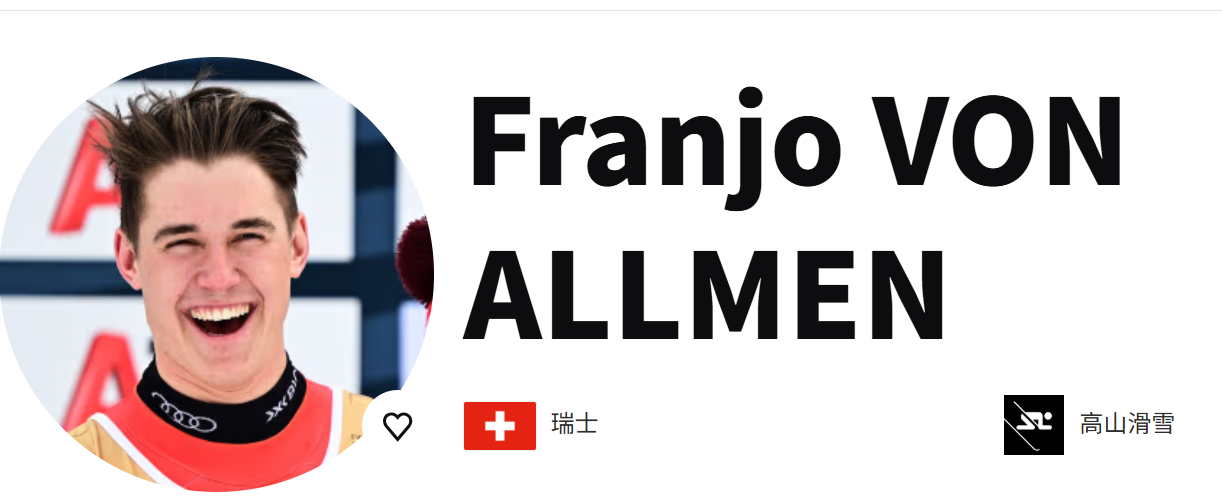 2月7日,在米兰-科尔蒂纳冬奥会高山滑雪男子滑降项目中,瑞士选手弗兰约·冯·奥尔曼取得冠军,赢得了本届冬奥会的首金。