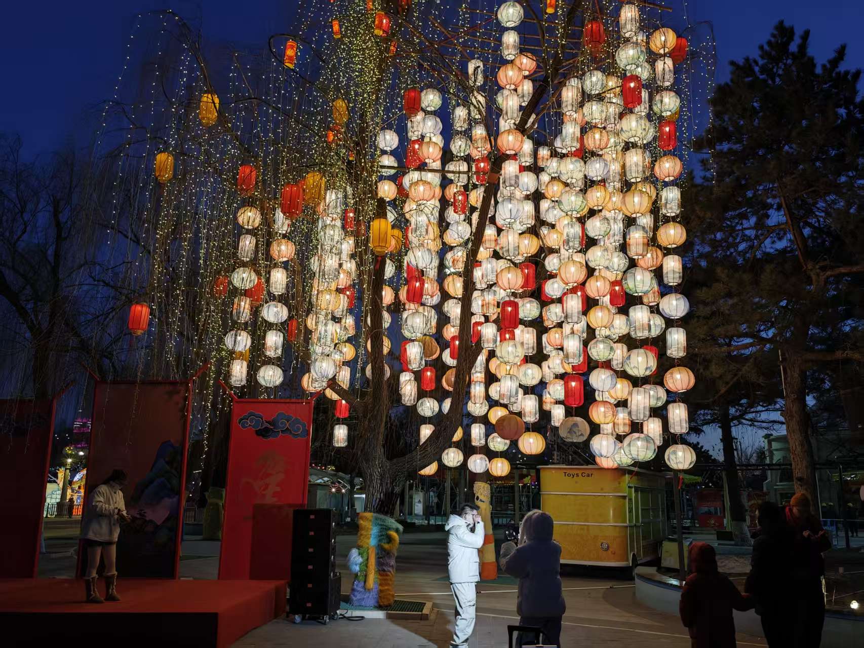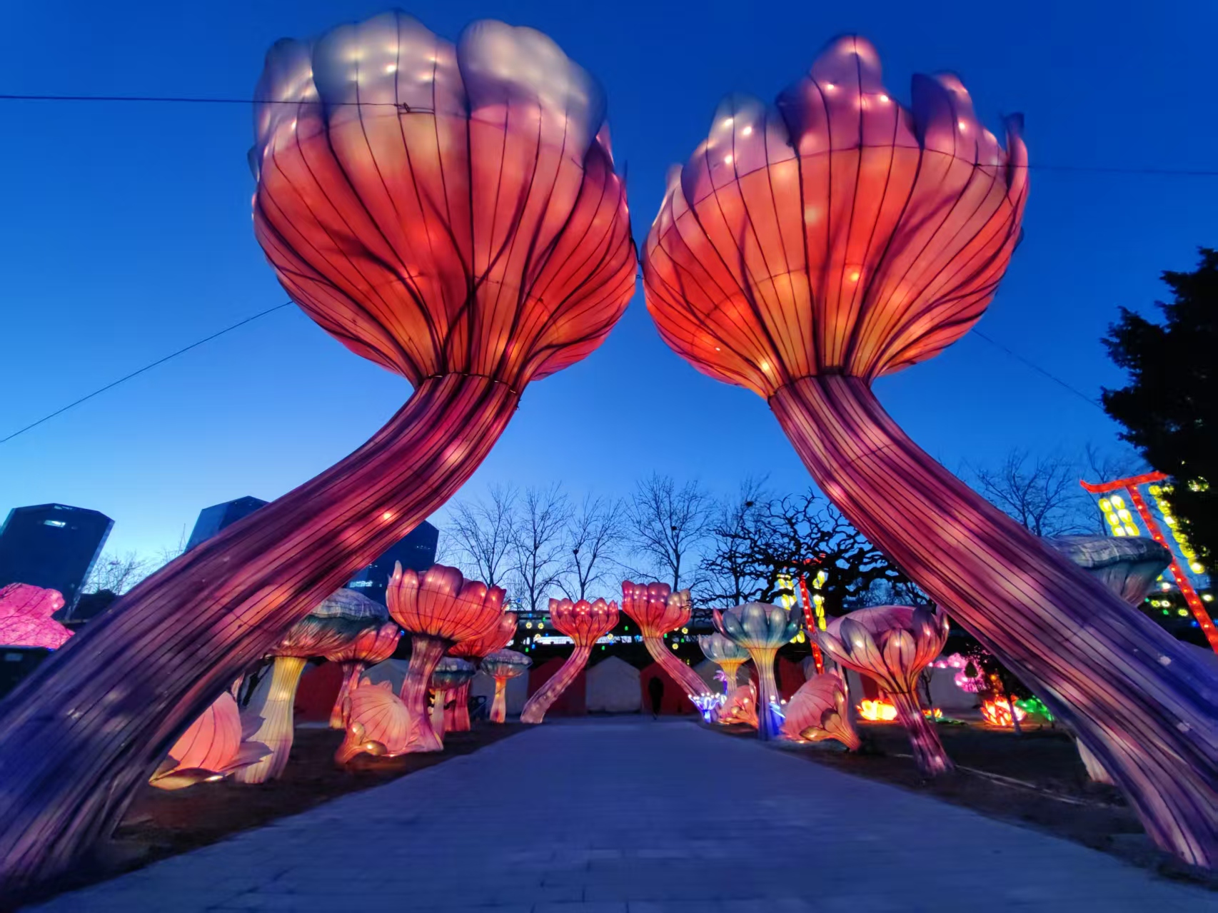 园区内布置六大主题灯组,从神话传说到梦幻雪景,移步换景,皆为拍照打卡胜地。东园市集汇聚京味小吃、国际美食与非遗文创,音乐大道“京蒙牵手”,27家内蒙古优质文旅资源进京拜年,公主花园、波音广场更设有奖嘉年华活动,配合100%中奖的入园抽奖,品牌电视、电饭煲等好礼连环放送,惊喜不断。