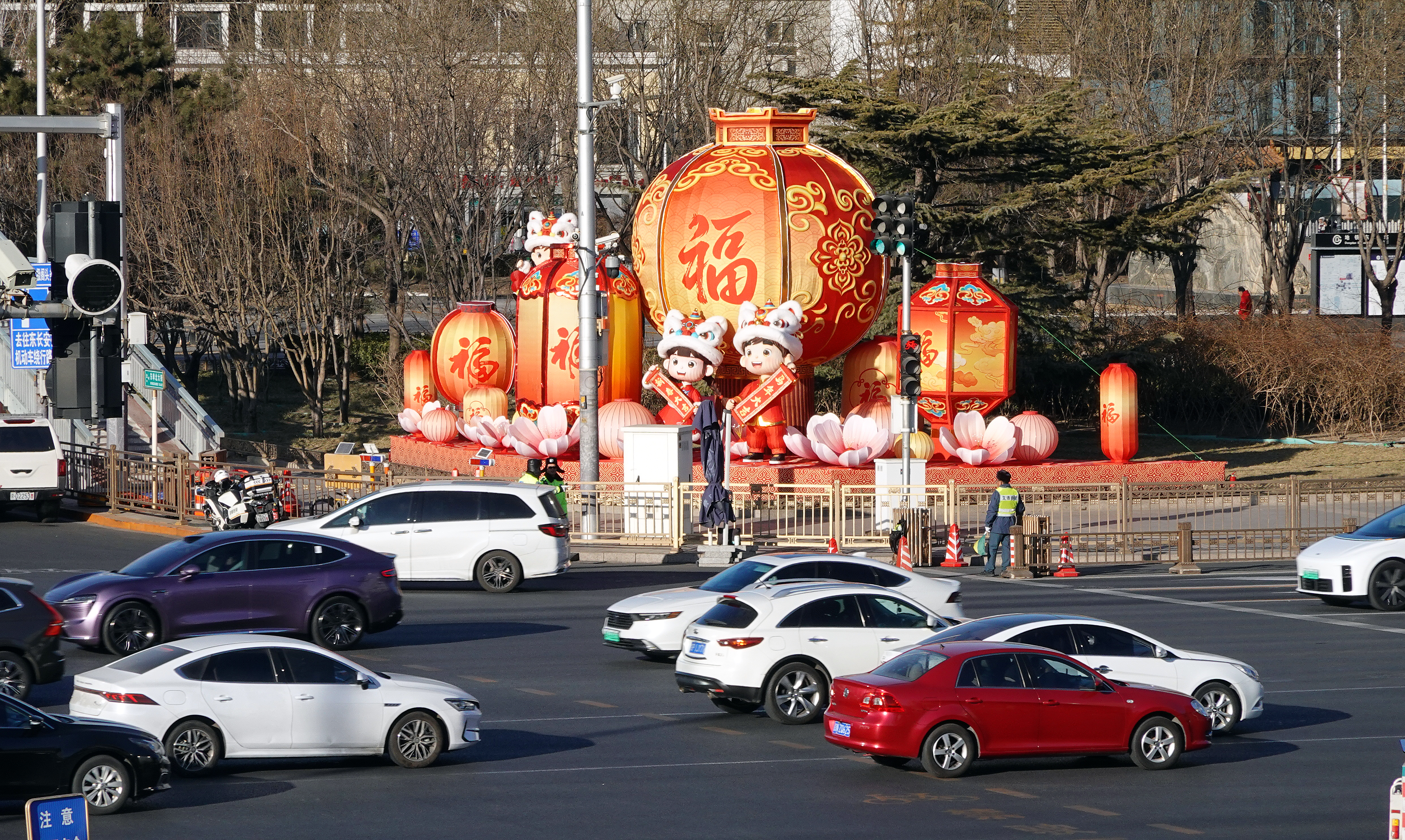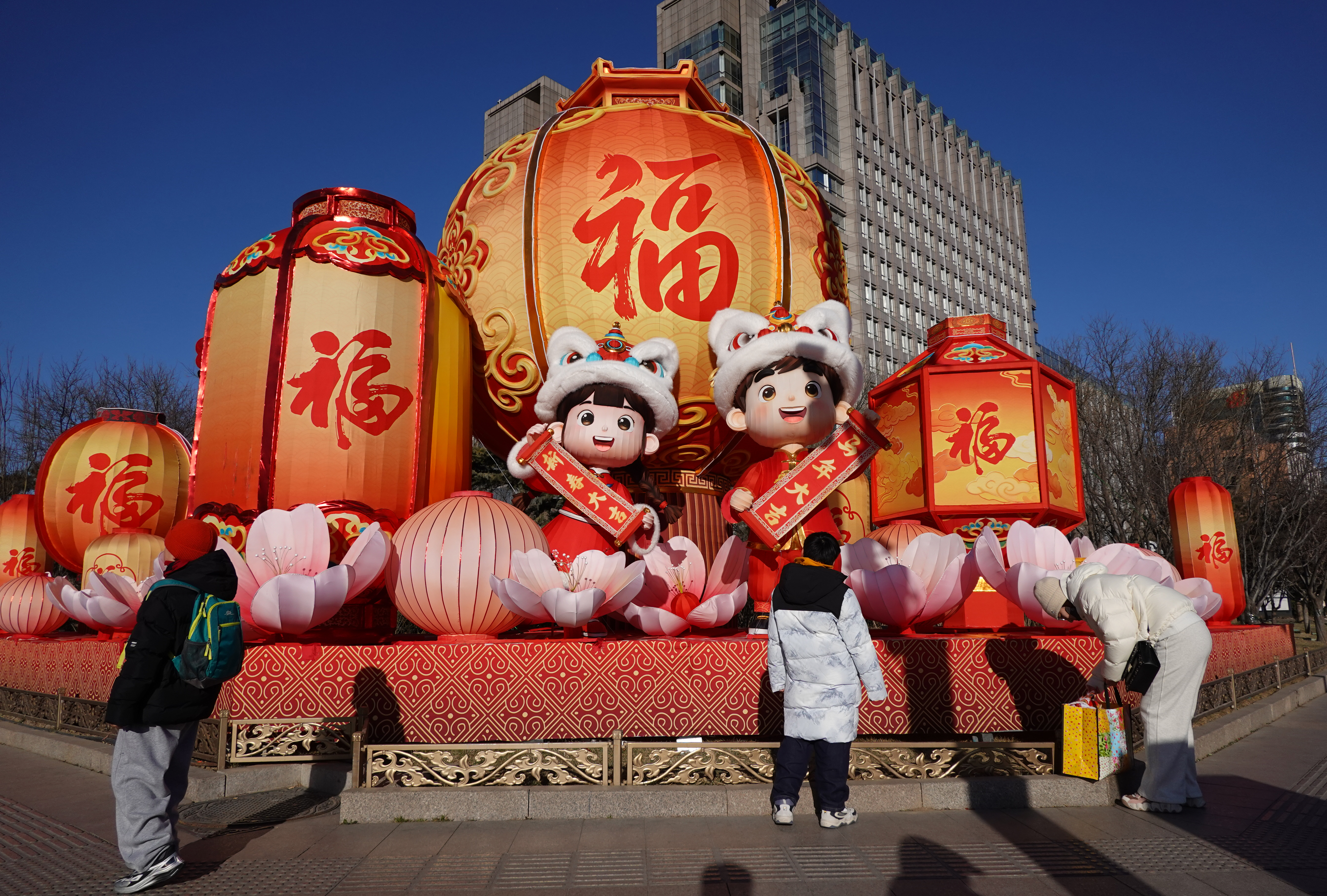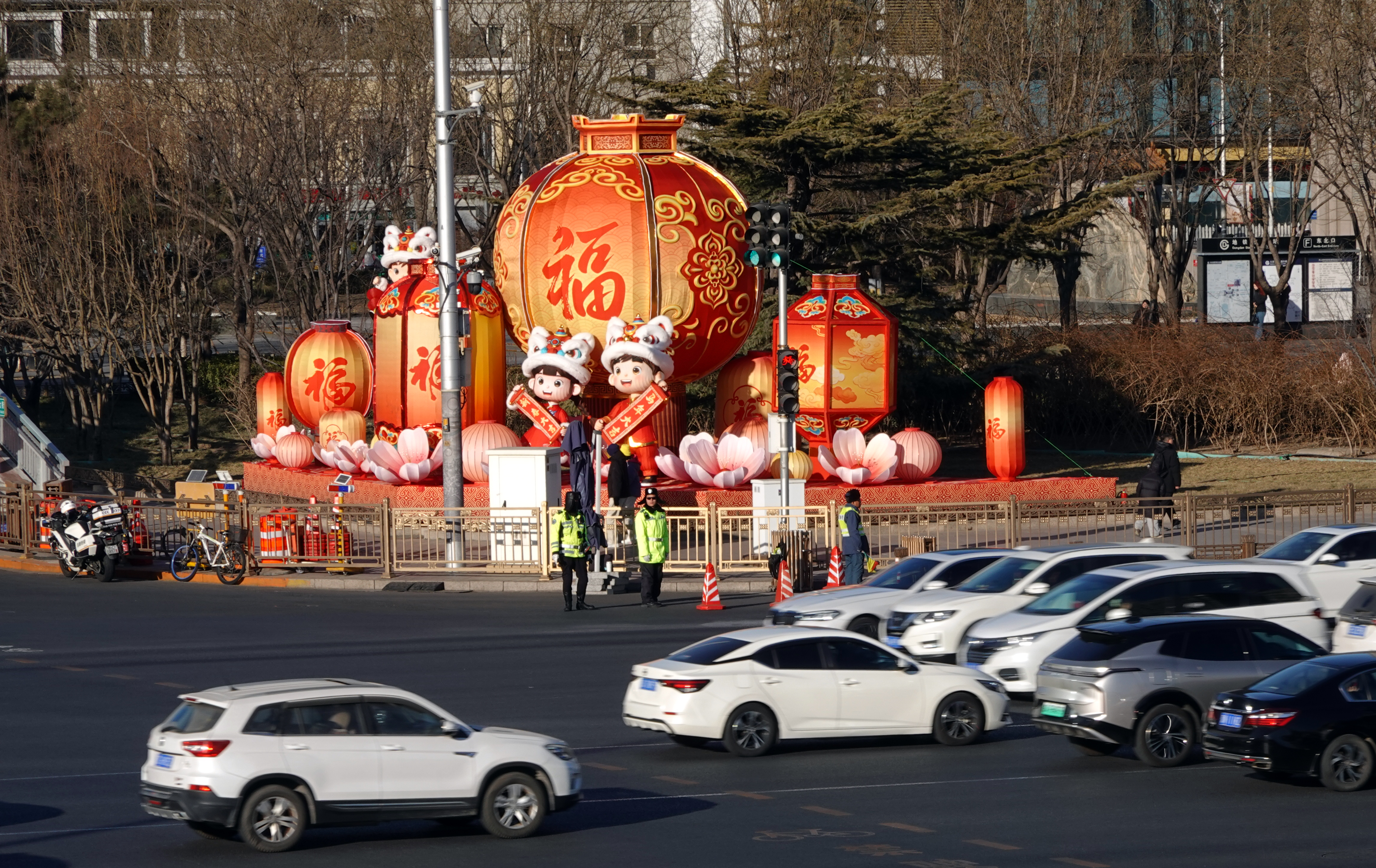 2026年2月7日,在北京东单路口出现大型烘托节日气氛的景观。