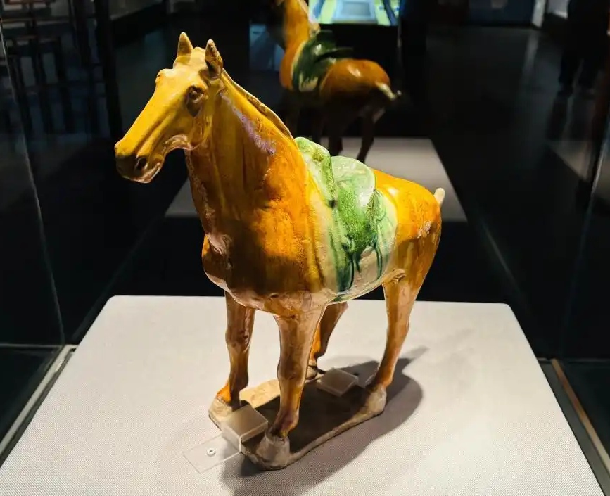 唐三彩马成了展览中的流量明星,观众驻足不前,赞叹不已。据介绍,唐三彩中最具代表性的就是唐三彩马,展览中的这件珍品,更是将唐马的姿态之美展现得淋漓尽致。