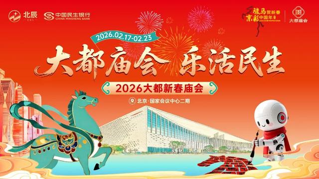2026大都新春庙会将于正月初一至初七(2月17日-23日)在国家会议中心二期举办,以“国家会客厅,百姓喜乐荟”为主题,锚定“科技感、国际范、中国味”核心,打造集多元体验于一体的现代化室内盛会。深度整合亚奥区域文商旅体展多业态资源,着力打造沉浸式新春休闲体验目的地。